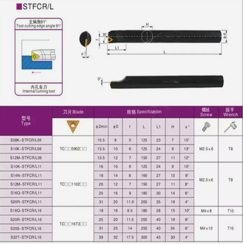 Model: S20R-STFCL11 Cutting direction: left Insert:TCMT1102 Material: alloy steel Color:Black Package include: 1pc S20R-STFCL11 1pc wrenches Notice: This product does not include blades, the blade is purchased separately