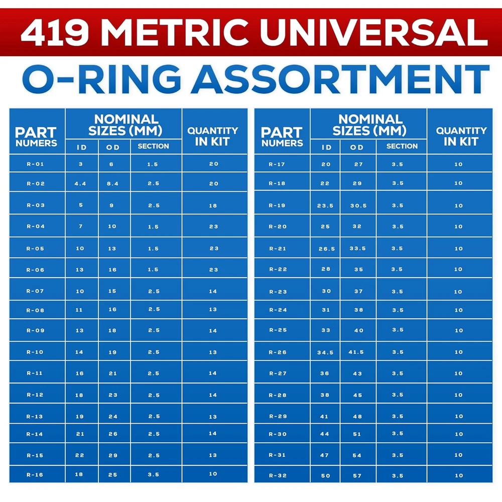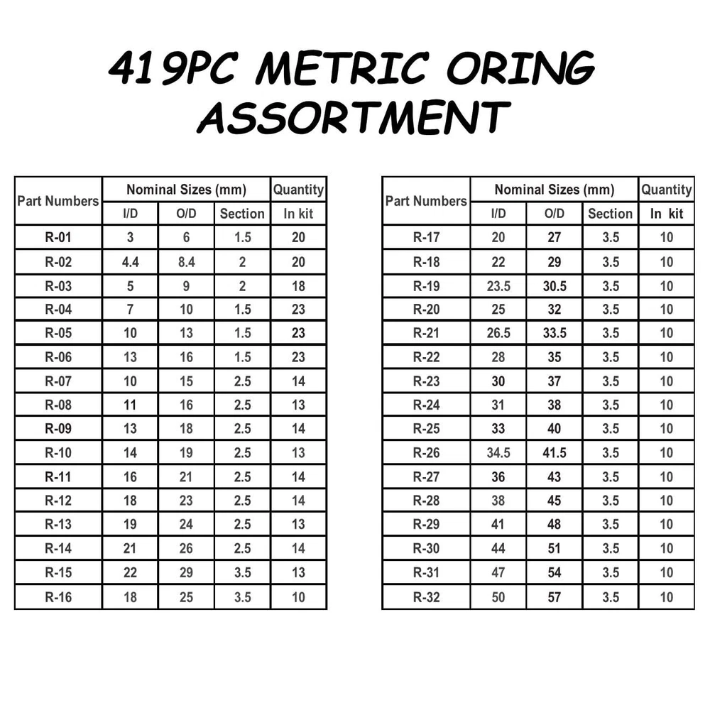 Store New Arrivals Add to Favorite View Feedback Contact SAE Metric Rubber O-Ring Washer Assortment Kit Automotive Storage Case Oring Set Description Item model number 826pc Material Nitrile rubber Number of Items 826 Nominal Outside Diameter 2 Inches Item Diameter 3 Millimeters Country of Origin China Nominal Inside Diameter 3 Millimeters Package Dimensions 9.93 x 6.35 x 3.3 inches; 2.55 Pounds Is Discontinued By Manufacturer No Nitrile rubber Resists oils, hydraulic fluid and water Includes storage case with o-ring gauge Metric sizes from 3 mm I.D. to 50 mm I.D. SAE sizes from 1/8” I.D. x 1/4” O.D. to 2” I.D. x 2-1/4” O.D. Product Description ABOUT US We offer the best prices around on high quality products. Our E-store includes media such as books, movies, music and games while offering electronics, toys, sporting apparel, clothing, tools, general home, garden items and more. SHIPPING We are always working hard to ensure your package arrives as soon as possible. Please understand that some factors like weather, high postal traffic, and the performance of shipping companies are outside of our control. We offer free shipping to the lower 48 states and ship within 2 business days of payment, usually sooner. We do not accept P.O. Boxes. Please provide a physical address. RETURNS We offer a 30-Day Return Policy on items which you are not completely satisfied with. You have the option for a full-refund or an exchange of the item. No returns are available on items shipped outside of the USA. PAYMENT We accept PayPal. CONTACT US This page content is yet to come Please ad us to your favorite seller and visit again later Thank You CUSTOMER SATISFACTION We try our very best to make sure every customer is completely satisfied. If there's a problem, message us! We're happy to help.
