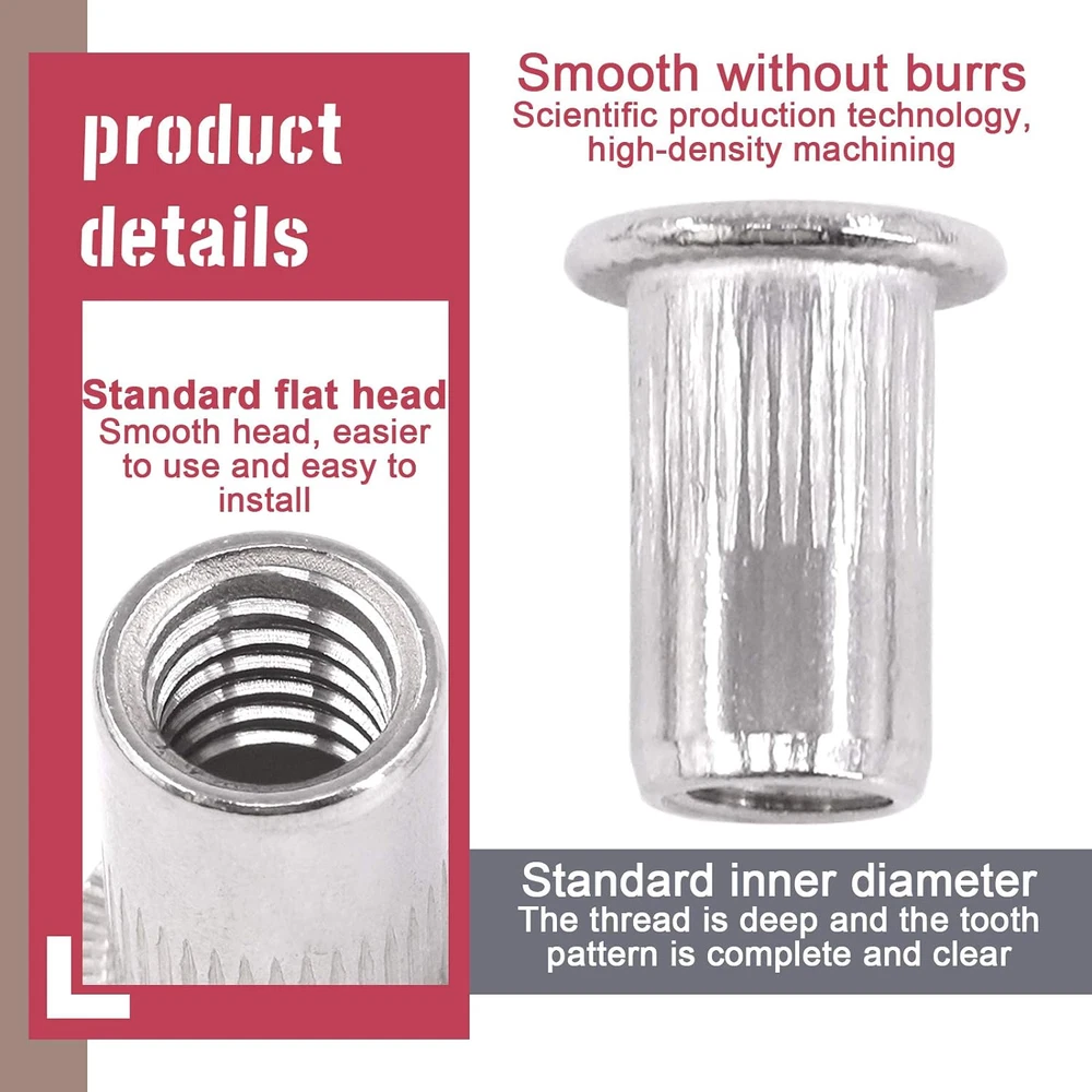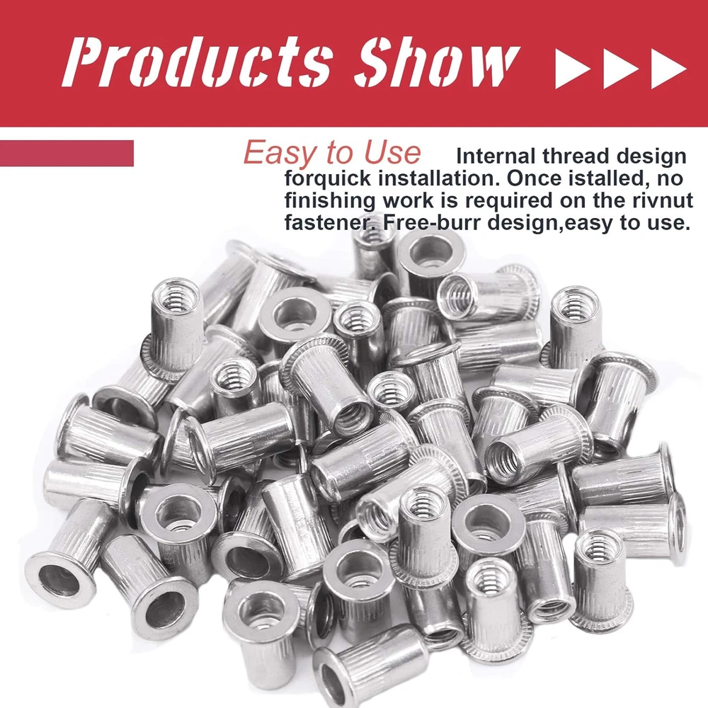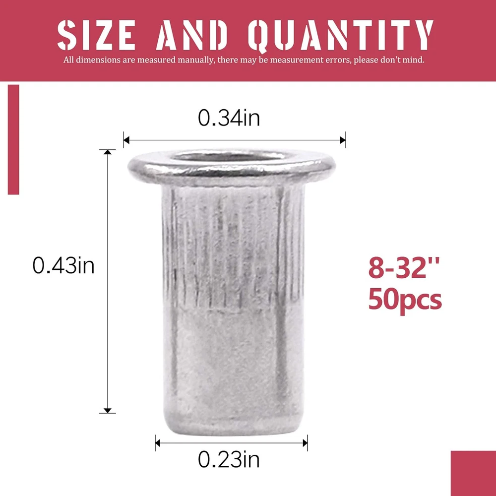 Store New Arrivals Add to Favorite View Feedback Contact SAE Stainless Steel Rivet Nuts Threaded Insert Rivnuts (#8-32“-(50PCS)) Description Item model number H-304LaNiu Thread Size #8-32 Style #8-32“-(50PCS) Fastener Type Blind Material Stainless Steel 304 Part Number H-304LaNiu Color Yellow Finish Type Polished Certification Sae Batteries Required? No Drive System External Hex Item Weight 2.57 ounces Finish Polished Batteries Included? No Metal Type Stainless Steel, Alloy Steel Size One Size Exterior Finish Stainless Steel Package Dimensions 3.98 x 3.54 x 1.34 inches Number of Pieces 50 🔺【WELL CRAFTED】Rivet nuts are made of 304 Stainless Steel Material, well selected material and firm construction; high hardness, non deformation, not easy to rust, wear - resistant and anti-corrosion flat head rivnuts. We offer a lot of riveting products, riveting tool and rivet mandrel pieces. Please go to our store and find out more! 🔺【COMPLETE SIZES AND MODELS】We contains various and complete models for your riveting needs. With strong metallic luster and precise thread, surface electroplating treatment, no burrs, these rivet nuts are absolutely your good choice. Size Include: 3/8-16, 5/16-18, 1/4-20, #10-24, #8-32 🔺【SIMPLE TO USE】 These threaded insert nutsert get the job done! Crushed down fast and do not spin when some torque is used on them. Get you a threaded hole in metal nice and fast. Once installed, they sit tight and secure. A nice thread insert nuts we offer and they are good addition to your tool kit. 🔺【WIDE APPLICATION】Pull rivet nut , also known as rivet nuts , pull caps , pull caps moment, for all kinds of metal sheet, pipe and other manufacturing industries in the field of fastening. Widely used in construction, automobile, and other household appliances and furniture products 🔺【QUALITY AFTER-SALE SERVICE】If you do not satisfy with our products or if you have any questions, please feel free to . We would work out a satisfactory solution to your problem. FREE or within 90days. 12 hours response service! Hilitchi 5Sizes Stainless Steel Rivet Nuts Threaded Insert Rivnuts 8-32, 10-24, 1/4-20, 5/16-18, 3/8-16 【Specifications】 - Sizes: 8-32, 10-24, 1/4-20, 5/16-18, 3/8-16 【Please check the second picture for more size detail】 - Material: 304 Stainless Steel - Color : Silver Tone 【Features】 - Rivet Nuts can be installed from one side of the work piece, also known as a Blind Application. - Rivet Nuts work great when easy disassembly and reassembly of products is required. - Rivet nuts can be installed in many different kinds of material including steel, plastic and fiberglass. - Made of 304 Stainless Steel Material, Very Good Corrosion Resistance, It Can Be Used in a Humid Environment. - This set is organized by size / type in a transparent storage case for quick access and protection. This set is organized by size in a transparent storage case for quick access and protection. Hilitchi Riveter Riveting Tools Mandrels and Rivetnut Supplies. We offer a lot of riveting products and self drilling screws, dry wall screws, hex nuts, hex bolts, rivets, anchors, nails, flat washers, spring washers, couplings and fixings. ABOUT US We offer the best prices around on high quality products. Our E-store includes media such as books, movies, music and games while offering electronics, toys, sporting apparel, clothing, tools, general home, garden items and more. SHIPPING We are always working hard to ensure your package arrives as soon as possible. Please understand that some factors like weather, high postal traffic, and the performance of shipping companies are outside of our control. We offer free shipping to the lower 48 states and ship within 2 business days of payment, usually sooner. We do not accept P.O. Boxes. Please provide a physical address. For shipping outside of the continental USA, we only use eBay's Global Shipping Program.The item is shipped to KY and then sent to the rest of the world. International customers are responsible for all duties and taxes. Continue to check out in order to calculate costs for shipping the item to your country. Messages regarding eBay's Global Shipping Program MUST be directed at eBay EXCLUSIVELY. RETURNS We offer a 30-Day Return Policy on items which you are not completely satisfied with. You have the option for a full-refund or an exchange of the item. No returns are available on items shipped outside of the USA. PAYMENT We accept PayPal. CONTACT US This page content is yet to come Please ad us to your favorite seller and visit again later Thank You CUSTOMER SATISFACTION We try our very best to make sure every customer is completely satisfied. If there's a problem, message us! We're happy to help. WE ACCEPT Copyright © 2021 AutoDS. | All Rights Reserved