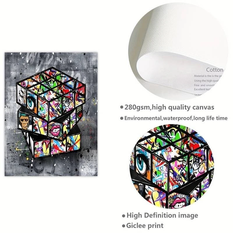 Add a splash of urban style to your home decor with this limited edition canvas print from the Charms of Charlotte collection. Featuring vibrant abstract graffiti art on a large canvas, this piece is sure to make a statement in any room. The giclée print production technique ensures high-quality, long-lasting colours and detail. Perfect for art lovers and street art enthusiasts alike, this print celebrates the rebellious and creative spirit of graffiti culture. Hang it on your wall and let your imagination run wild. Model: CP78 Size: 40 cm x 60 cm
