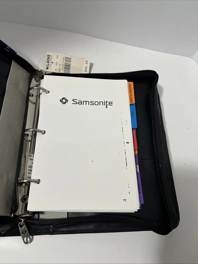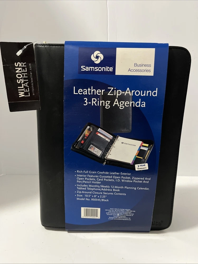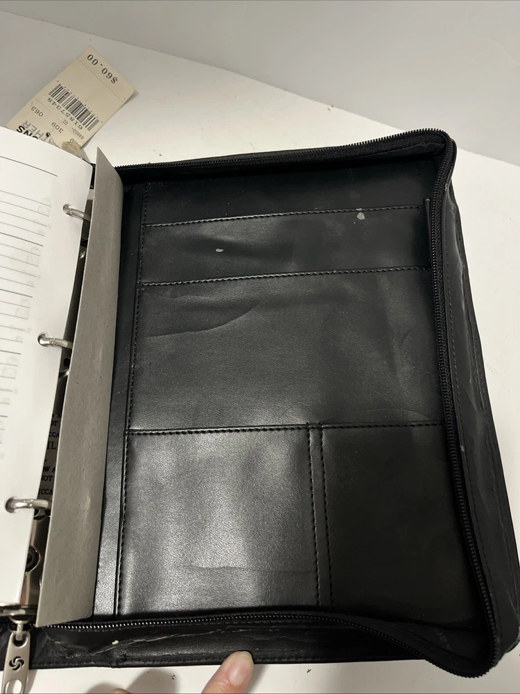 SAMSONITE Black Leather Zip-Around 3-ring Agenda Zippered Inner Pocket 2002