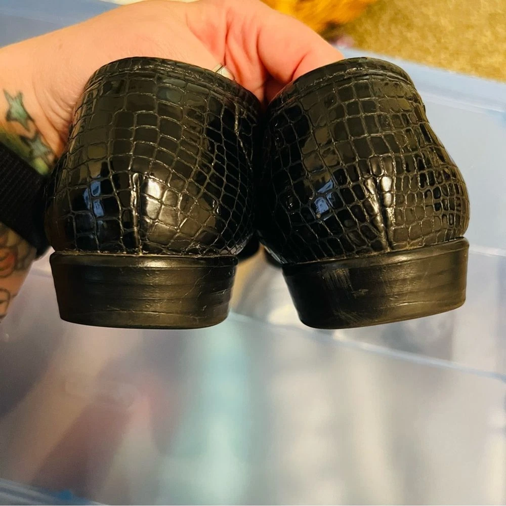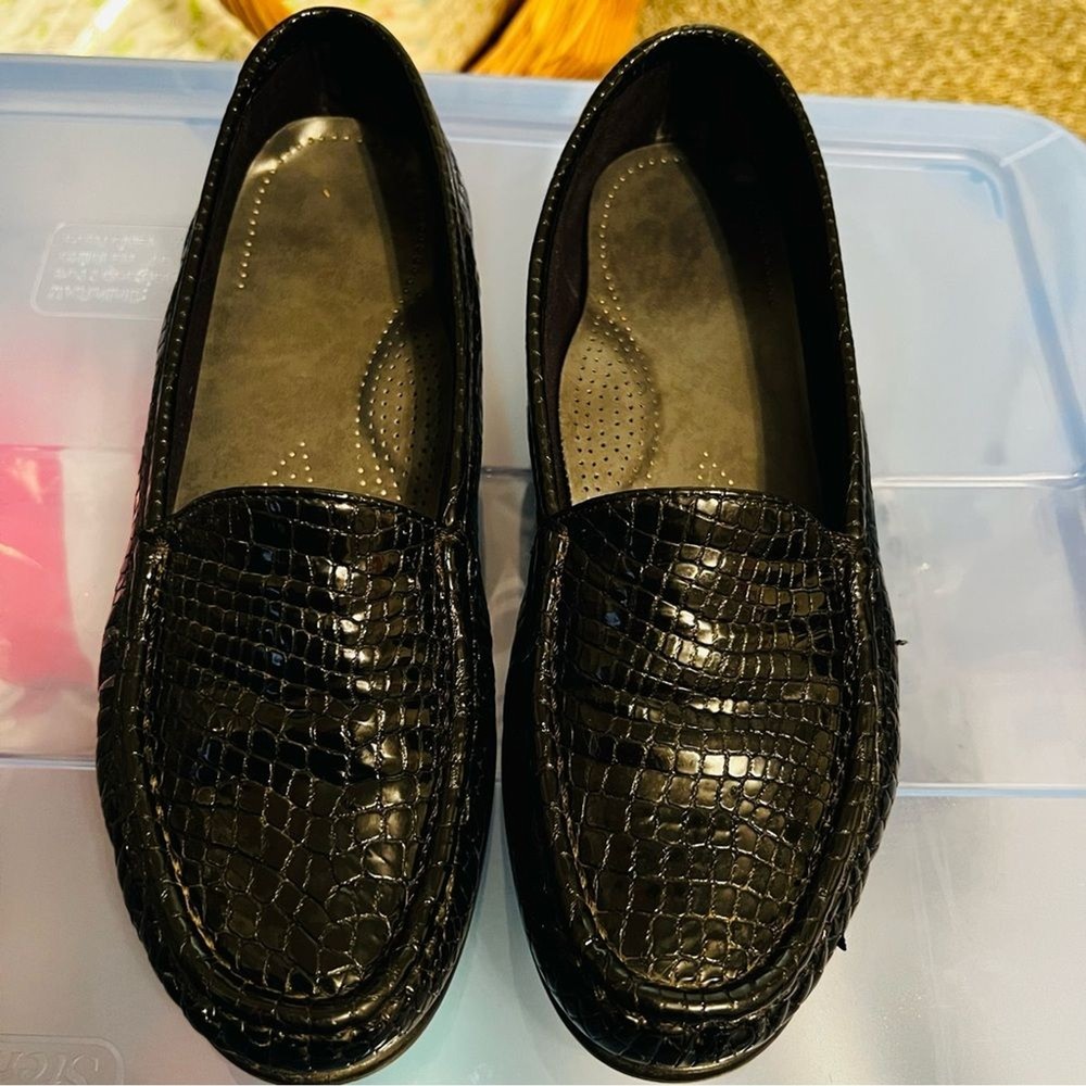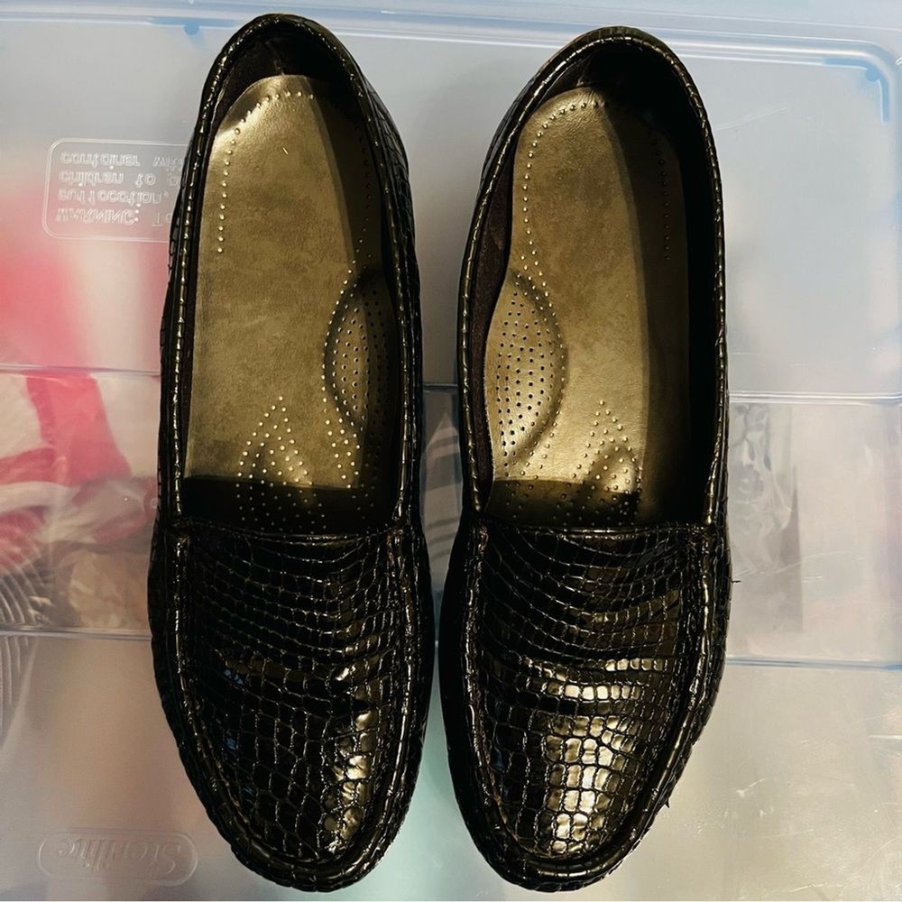 SAS Simplify Black Crocodile Embossed Leather Moccasin Loafers Size 8 Narrow Great condition, extremely comfortable. Removable insole. ABOUT ME: • I accept reasonable offers • Next business day shipping • New items posted daily • Smoke free home