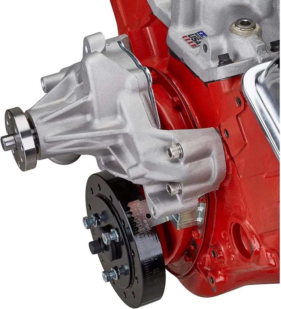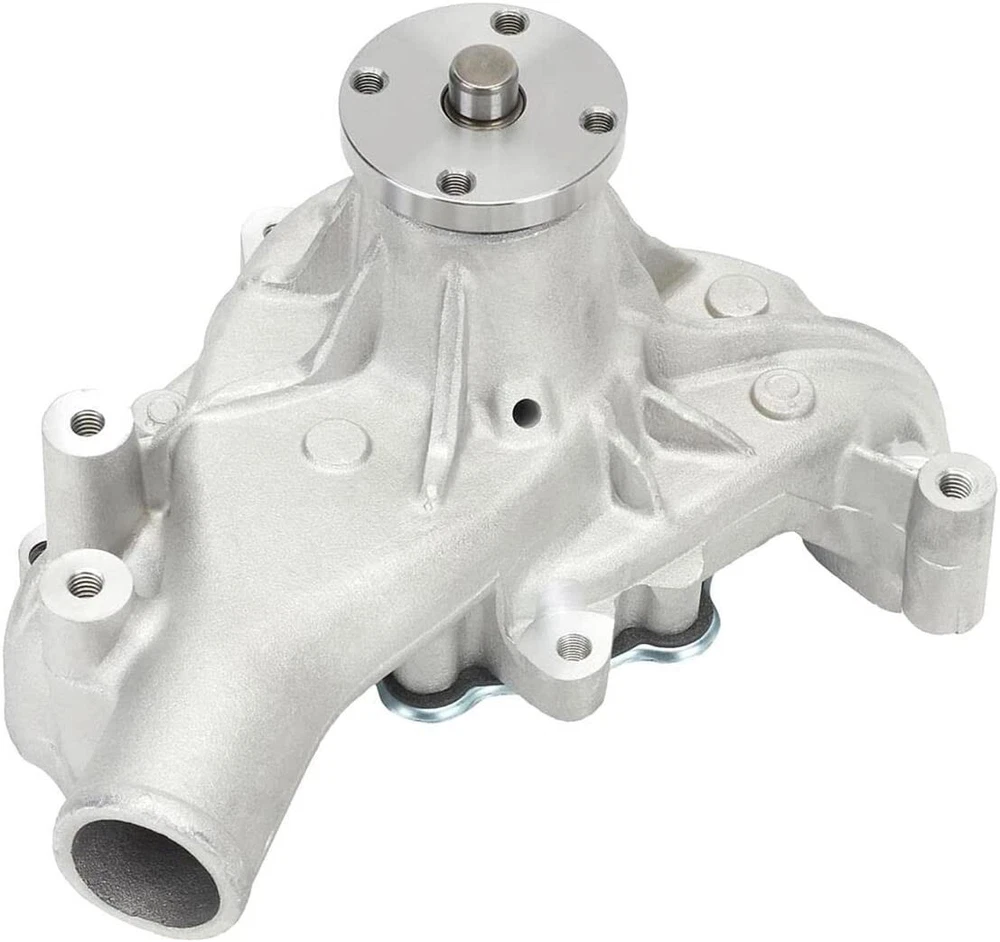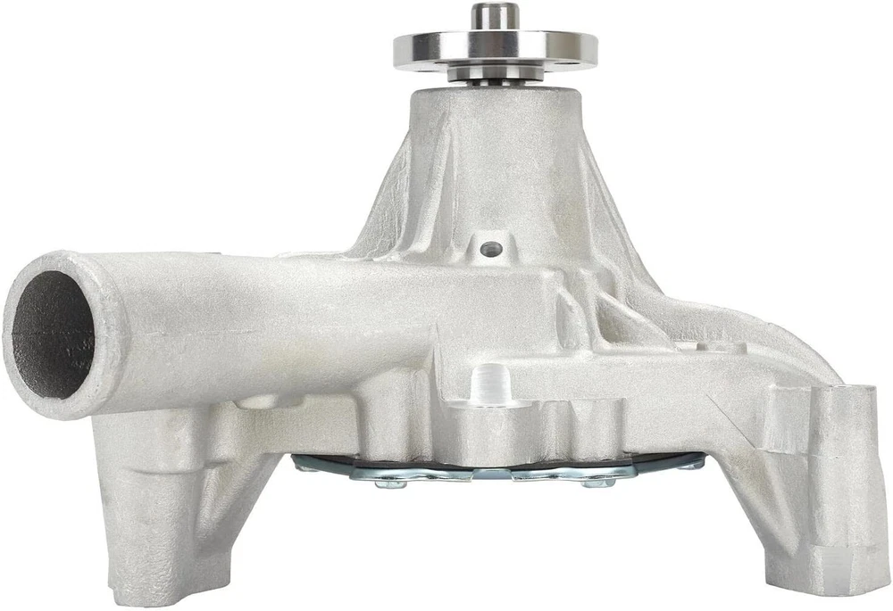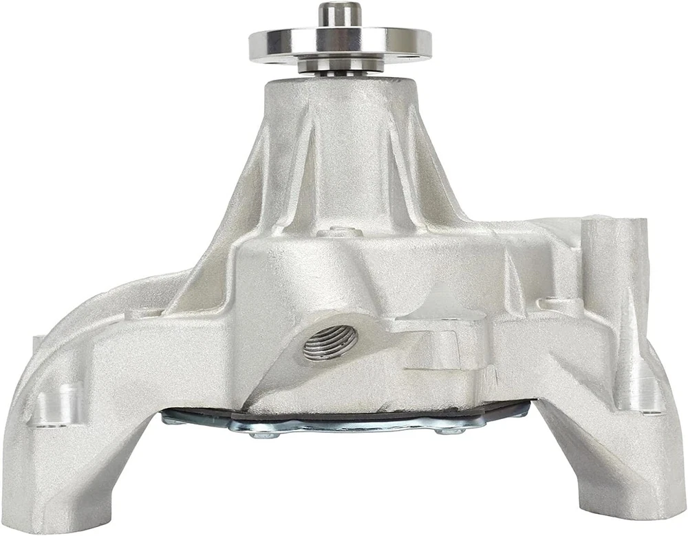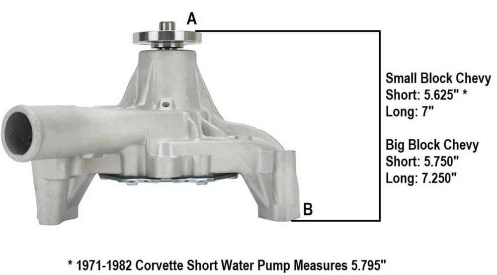 Small Block Chevy Aluminum Water Pump, Long 1969-1986 Each pump is manufactured from aluminum and features an impeller with curved vanes for maximum flow, pressure and equal distribution to both sides of the block. 3/4" shaft with 5/8" fan pilot snout 1/2" NPT hole on passenger side (for heater hose) Stamped steel rear plate Extra thick fan hub 3/4" ultra duty bearings State of the art aluminum castings Equal flow to both cylinder banks Precision impeller Higher flow rate and pressure rate Weighs 6 lbs. Does not have a set screw retaining the fan hub This pump is designed for street use and is not to be run on a motor which exceeds 5,500 RPM. All applications can vary and pulley alignment can change on custom set-ups. In certain cases it may be handy to purchace water pump pulley shims or spacers to achieve the correct alignment.