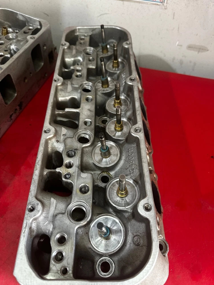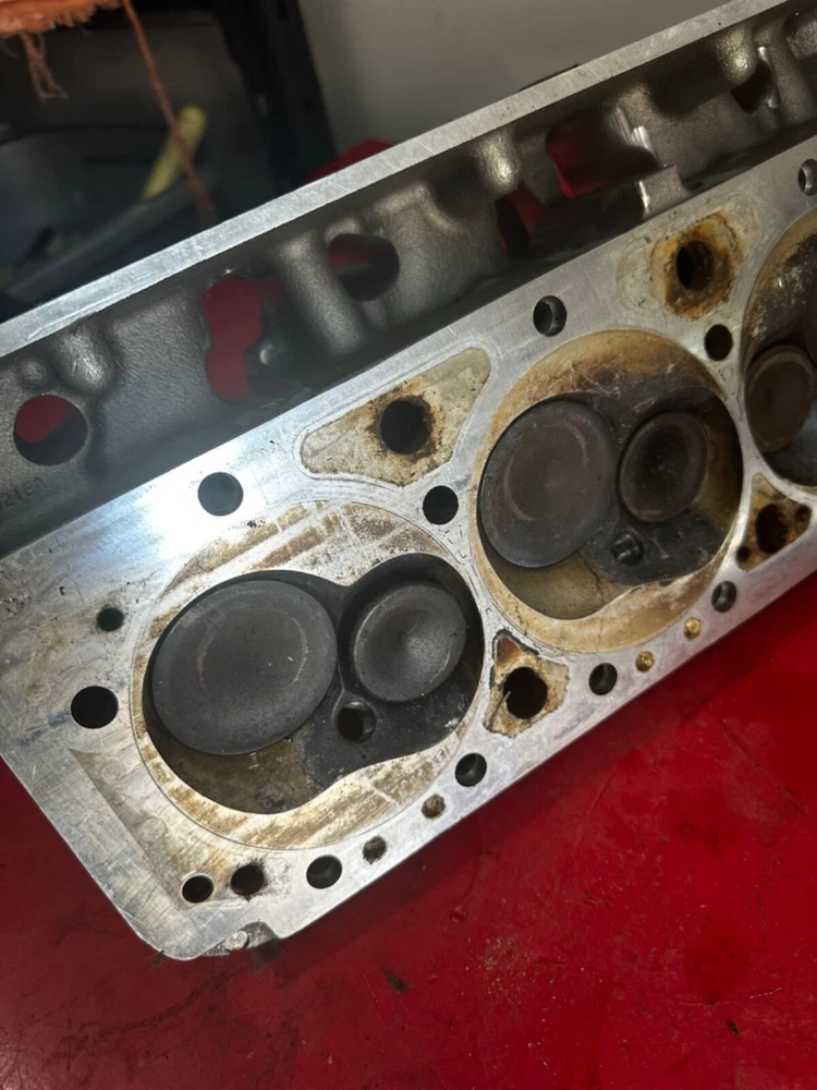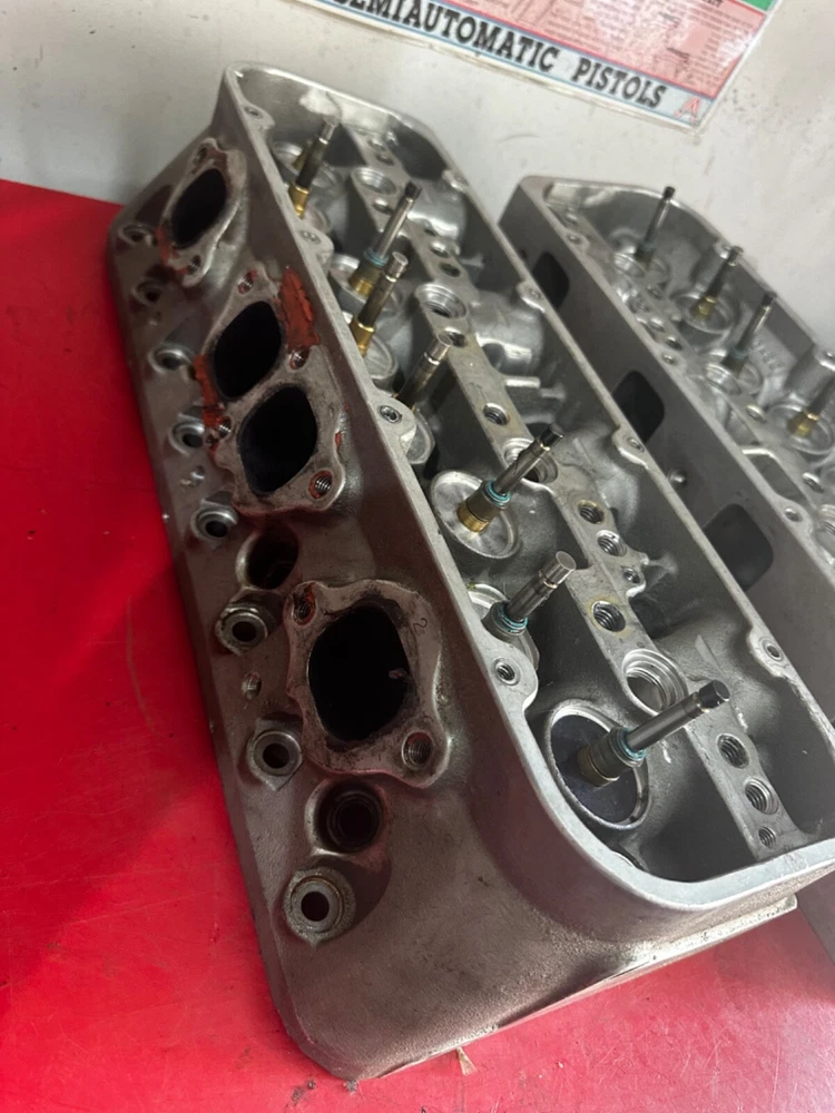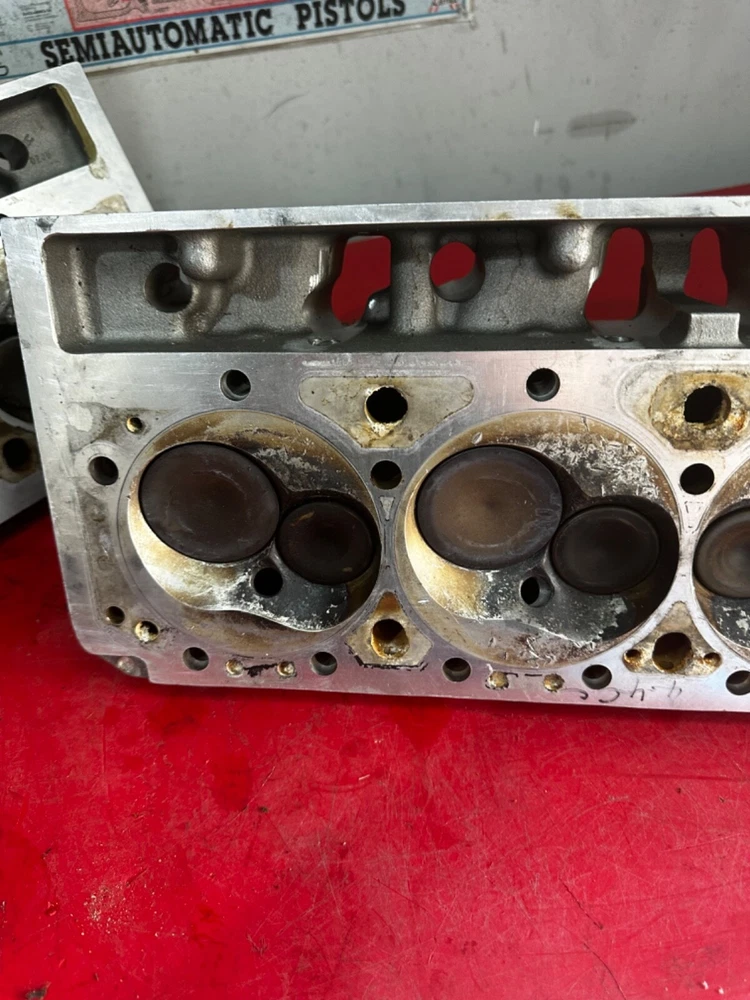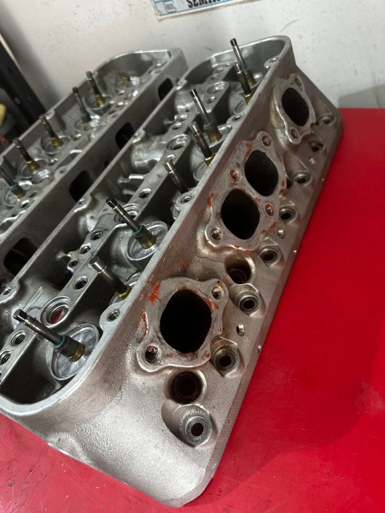 WILL ONLY SHIP TO THE LOWER 48 STATES! Bare set of SB2.2 Chevrolet aluminum heads that will need repaired. One hole with damage pictured with the broken exhaust valve still in place. Small amount of peckering on one other chamber on the other head that will easily clean up with a resurface. The guides are 5/16” exhaust, 7mm intake and use 2.180 and 1.600 valves. They are part number 12480011 and are dated 08-02. The intake ports measure right at 2.160 x 1.563. The heads are a matched set. Comes with what appears to be 14 usable valves that still have plenty of margin left to reface. They will come just as pictured. We ship only to the lower 48 United States and ship via UPS only!