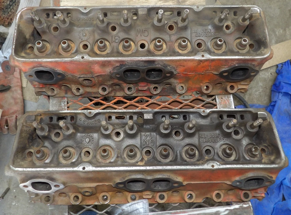 This is for 2 Bare GM SBC #3973487 Heads Date codes H-14-70 H-30-71 1970 71 Had 1.94/1.50 Valves They have been checked for cracks and have none.one valve guide is broke at top.No Reserve!