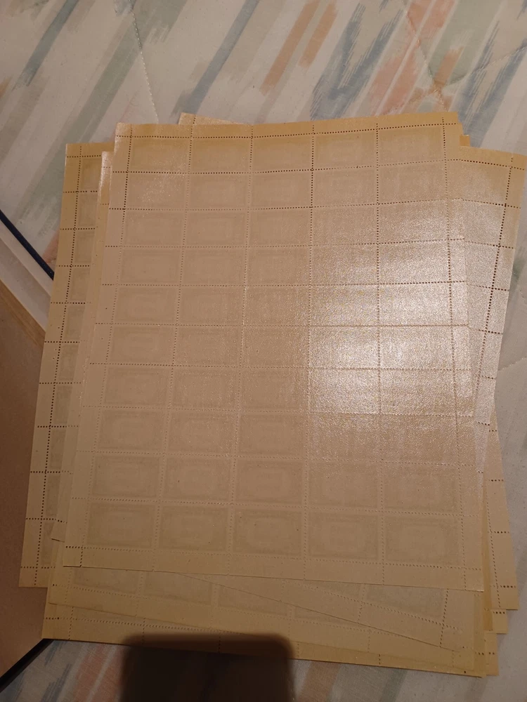 13 sheets, see pictures. could have minor issue like perf separate at the edges or fold at the perf.
