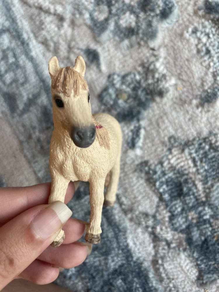 This Schleich horse figurine is a beautiful addition to any collection. Crafted with plastic material, this Shetland pony mare horse is a stunning representation of the animal class. The figurine was manufactured in Romania and is part of the Schleich Horse line. It is a perfect gift for any animal lover or collector. The item has been previously owned and is in excellent shape.