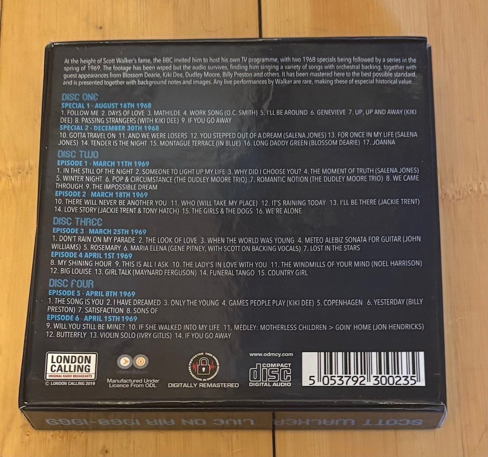 Up for sale is this great 4 disc box set including songs from SCOTT WALKER via his tv show! Great rare box for all you SCOTT WALKER purists! Sound quality varies, but essential Scott material indeed on here! PAYMENT MUST BE RECEIVED WITHIN 3 DAYS OF PURCHASE (AT POINT OF PURCHASE IDEALLY)! Combined shipping is always an option (save on shipping costs); please wait before clicking tab to pay until all items are merged into one invoice. BE SURE TO CHECK OUT MY OTHER COOL BUY IT NOW ITEMS ON HERE RIGHT NOW!