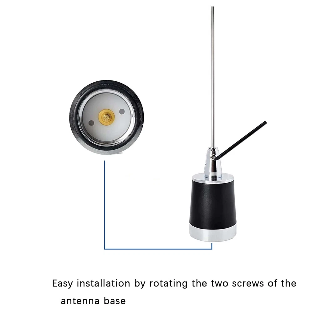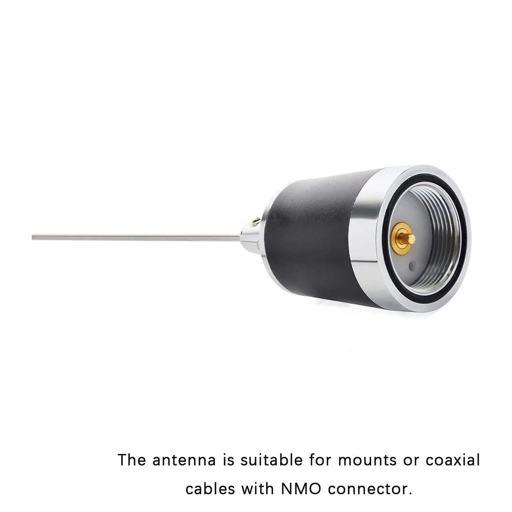 Maswell Dual Band NMO Antenna Compatible with Motorola Midland 2Meter/70cm Transceiver About this item [Mobile Radio Antenna Frequency] The antenna features VHF UHF of 144/430 MHz (136-174MHz and 400-470Mhz) with VSWR:<= 1.5. [Great Specifications] The antenna features great specifications with vertical polarization and gain: 144MHz (3.0dBi), 430MHz(5.0dBi) for better TX and RX. The maximum power input is 100W along with impedance ranging 50Ω and omni radiation. [Premium Material] This 20inch or 51cm tall antenna is composed of stainless steel making it durable and lightweight with a weight of 160g. The NMO mobile transceiver antenna requires no tuning. [Compatibility] The two-way antenna is compatible with VHF UHF Motorola Kenwood Icom Vertex Blackbox HYT Hytera mobile radios. [What You Get] The MASWELL package contains 1*dual band NMO antenna that is professionally tested and 1*small L-type installation tool. Please note that the NMO magnetic base in not included. If you run across any problems or issues, please feel free to contact us. The Maswell antenna features a frequency range of 144/430 MHz (136-174MHz VHF and 400-470Mhz UHF) with VSWR:< 1.5 which is carefully planned and developed to make sure, you receive great transmission over many uses. The Maswell dual band NMO antenna is compatible with VHF UHF Motorola Kenwood Icom Vertex Blackbox HYT Hytera mobile radios. NMO Connector Inner diameter is approximately 1.1 inches, outer diameter is approximately 1.5 inches. Premium Material This antenna is composed of stainless steel making it durable and lightweight with a weight of 160g. Antenna requires no tuning. Easy Installation Easy installation by rotating the two screws of the antenna base with the L-type installation tool. Compatibility The antenna is suitable for mounts or coaxial cables with NMO connector. Electrical Specifications Frequency Range 144/430 MHz Maximum Power Input 100W Gain 144MHz (3.0dBi) 430MHz (5.0dBi) Impedance 50 Ω VSWR <1.5 Polarization Vertical Radiation Omni Lighting Protection Direct Ground Mechanical Specifications Height 20 inches Antenna Connector NMO Weight 160g Radiating Element Material Stainless Steel