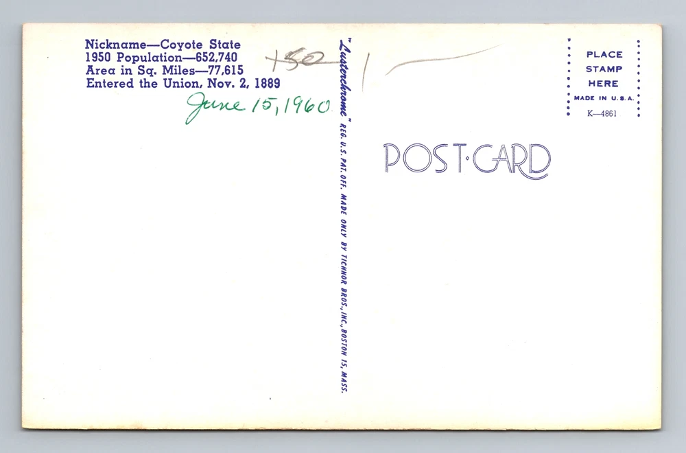 Country/Region of Manufacture: Unknown Country: USA Postage Condition: Unposted Theme: Cities & Towns Type: Printed (Lithograph) Unit of Sale: Single Unit City: South Dakota Subject: Cities & Towns Size: Standard (5.5 x 3.5 in) Material: Paper Era: Vintage Original/Licensed Reprint: Original Region: South Dakota