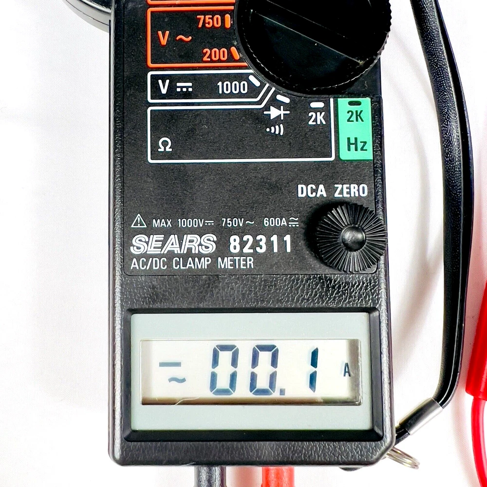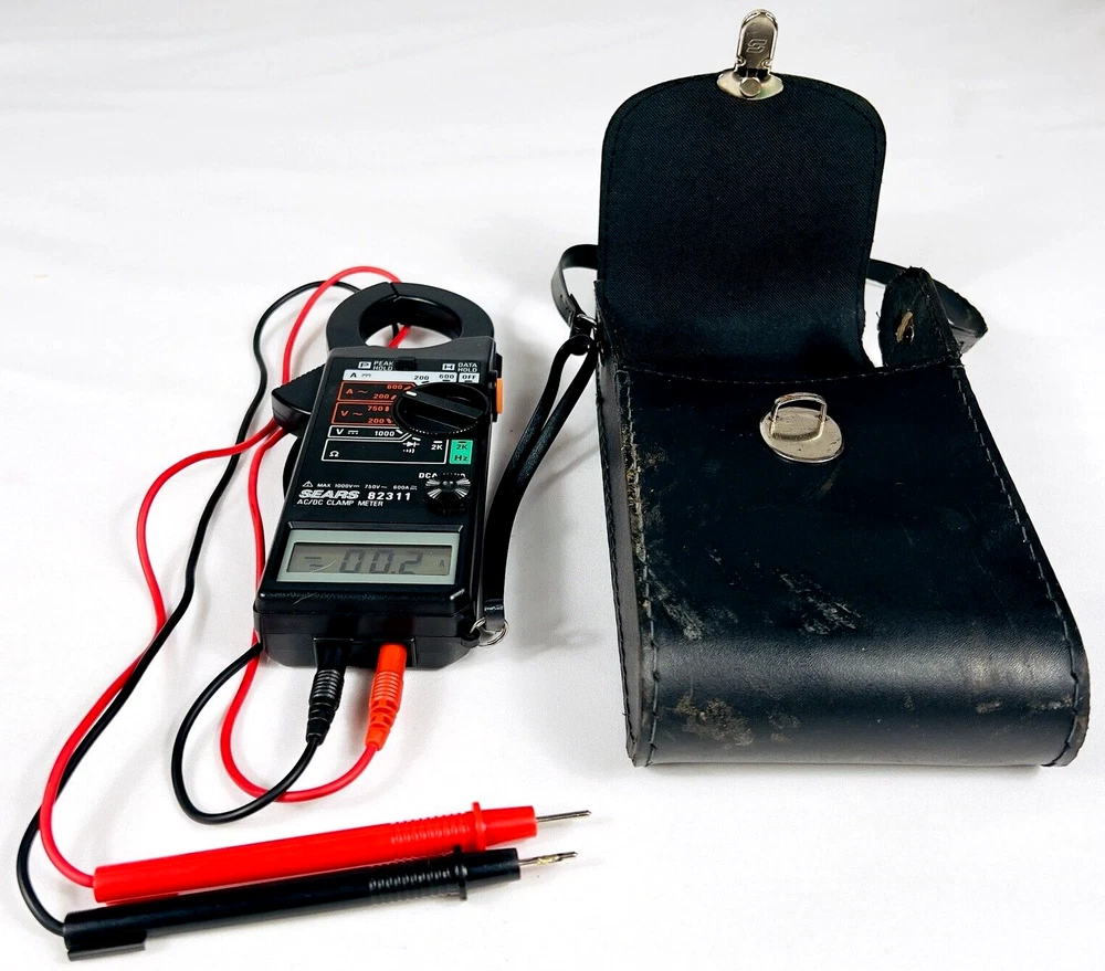 This AC/DC clamp meter from Sears is a reliable tool for measuring various electrical functions. With a frequency range of Hz, it can test for AC current, DC voltage, and transistor function. It also features a clamp function and a digital display. This handheld multimeter is ideal for business and industrial use, and it comes with a bag for easy storage and transportation. The unit type is a single unit, and it was manufactured in Taiwan. It has a serial number of 90522492.