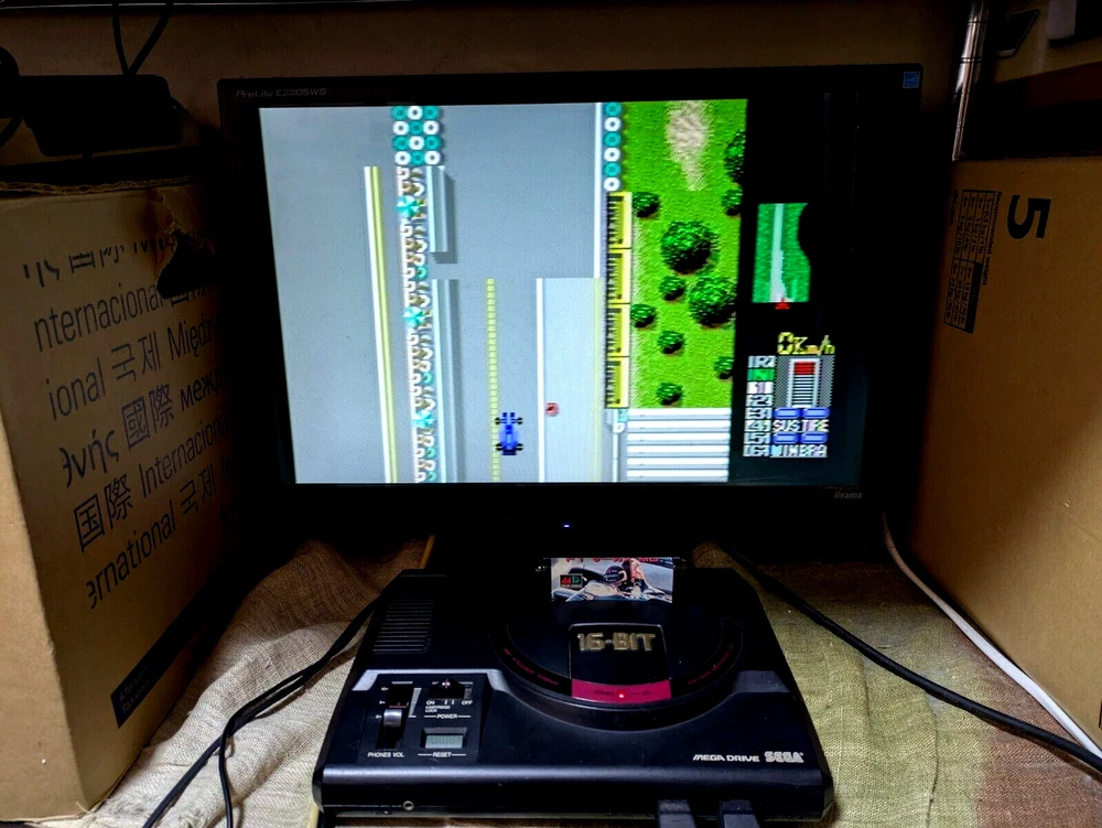 SEGA Mega Drive Console 16BIT 2 Controller Super Hang On Japan Box