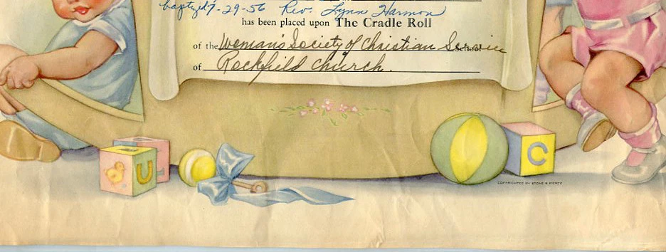 Cradle Roll Certificate - Measures 13' x 9" - Nice Condition B) 9-30-1954 & Bpt 7-29-1956 (David) - Child of Mr / Mrs Edward Self Woman's Society of Christian Service - Rockfield Church For International Shipping, please email me for costs Please click here to see other similar items in our Ebay store – We Combine All Postage, Thank You