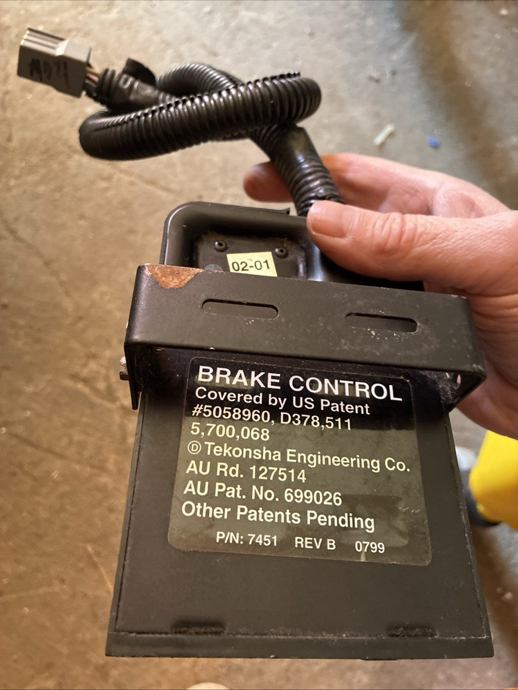 Vintage Part:NoNumber of Axles:1-4Type:Trailer Brake ControllerMounting Style:Screw-OnMaterial:PlasticCountry of Origin:United StatesDigital Display:NoActivation Type:Inertia-BasedBrand:TekonshaVehicle Electrical System Voltage:12 VFinish:MatteManufacturer Part Number:7451Features:Easy InstallationColor:Black