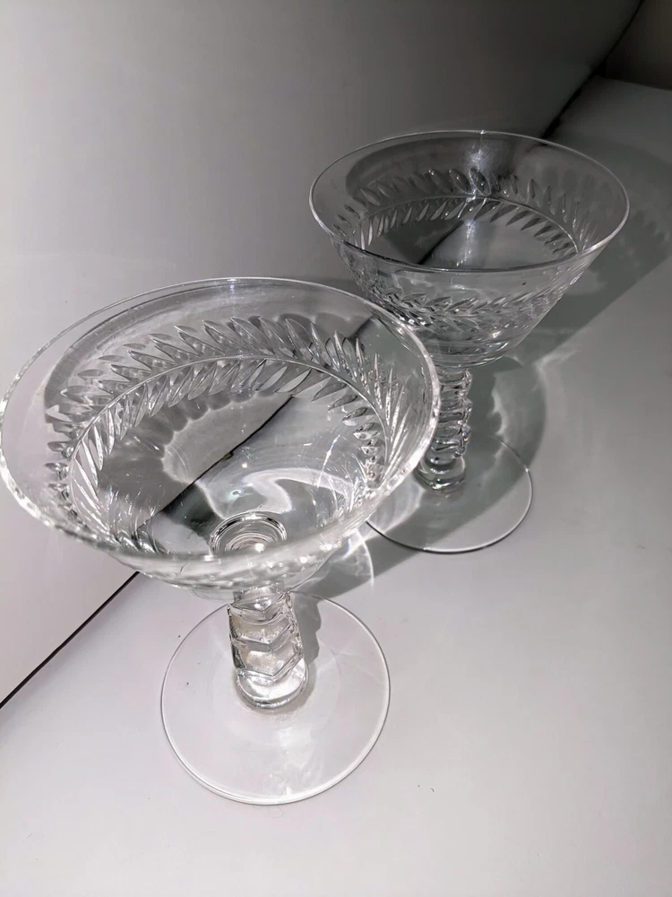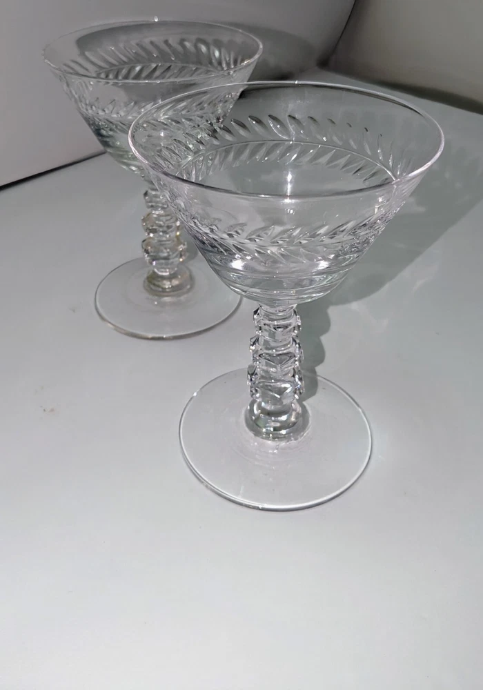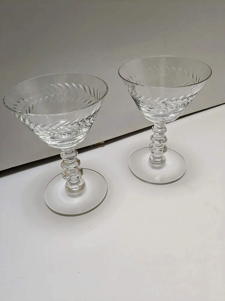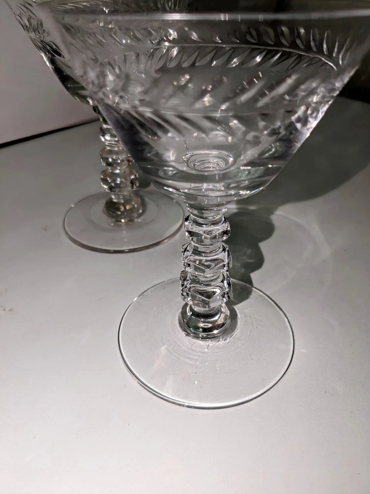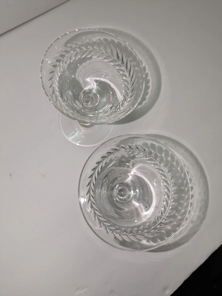 SET OF 2 TIFFIN "WOODSTOCK" ETCHED WREATH Cordial, Sherry STEMWARE