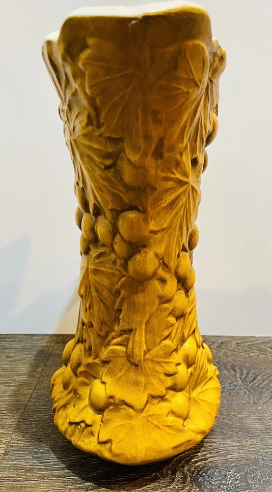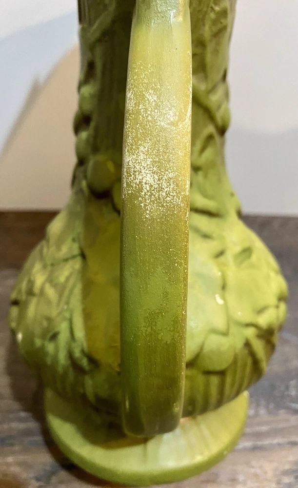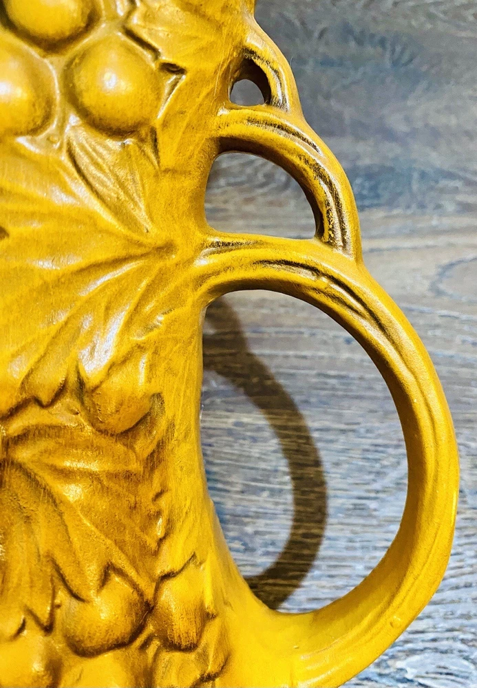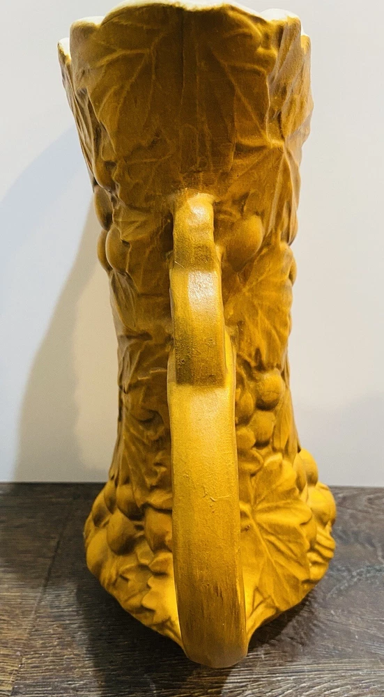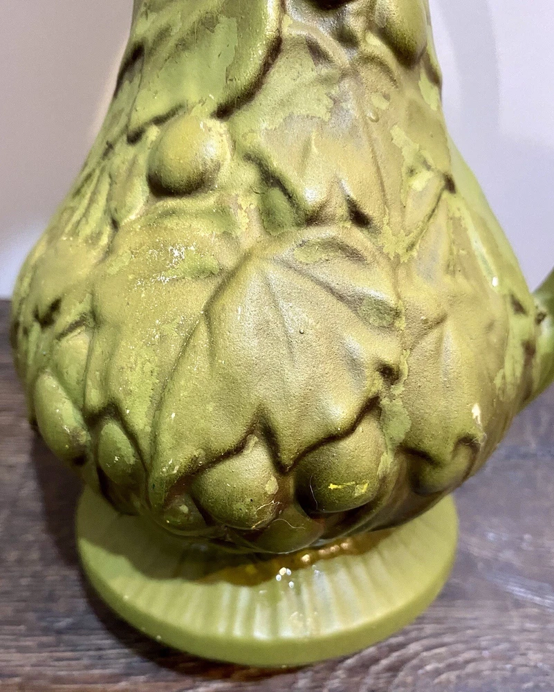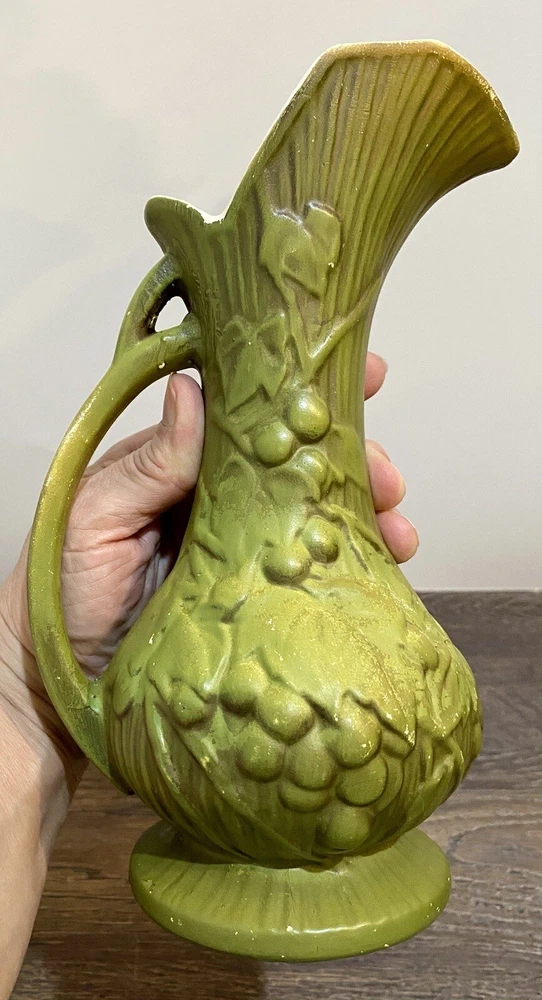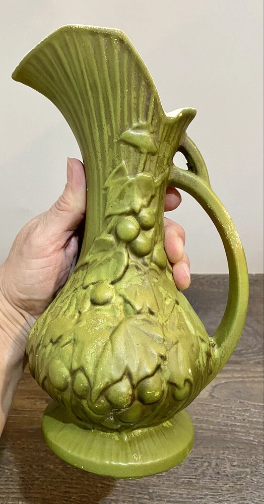 There is paint fading and imperfections with the vases. Please view all pictures as reference. Add a touch of vintage charm to your collection with this beautiful set of three McCoy Pottery Pitchers. Each pitcher features a glossy finish with a pattern of grapes and leaves in vibrant shades of yellow, red, and green. Handmade in the USA in the 1950s, these pitchers are a true representation of art pottery production technique. They have been well-preserved over the years and are in great condition. The item has a unique style and is perfect for both decorative purposes and serving drinks. Please read before bidding/buying: My items are usually pre-owned or vintage items and show signs of wear from years of use and storage --not brand new condition. Please take this into consideration when buying. I try to describe the item as accurately as possible and provide several pictures so you can determine condition. I am not familiar with everything so please ask questions before buying or let me know if you think I've overlooked any details. Items are sold as is with all sales being final. Payment is expected within 5 days or an unpaid item case will be opened with Ebay. I always leave feedback upon receiving feedback. This is how I know all is well and you're item arrived in good order. Thanks for your interest. **All reasonable offers considered**