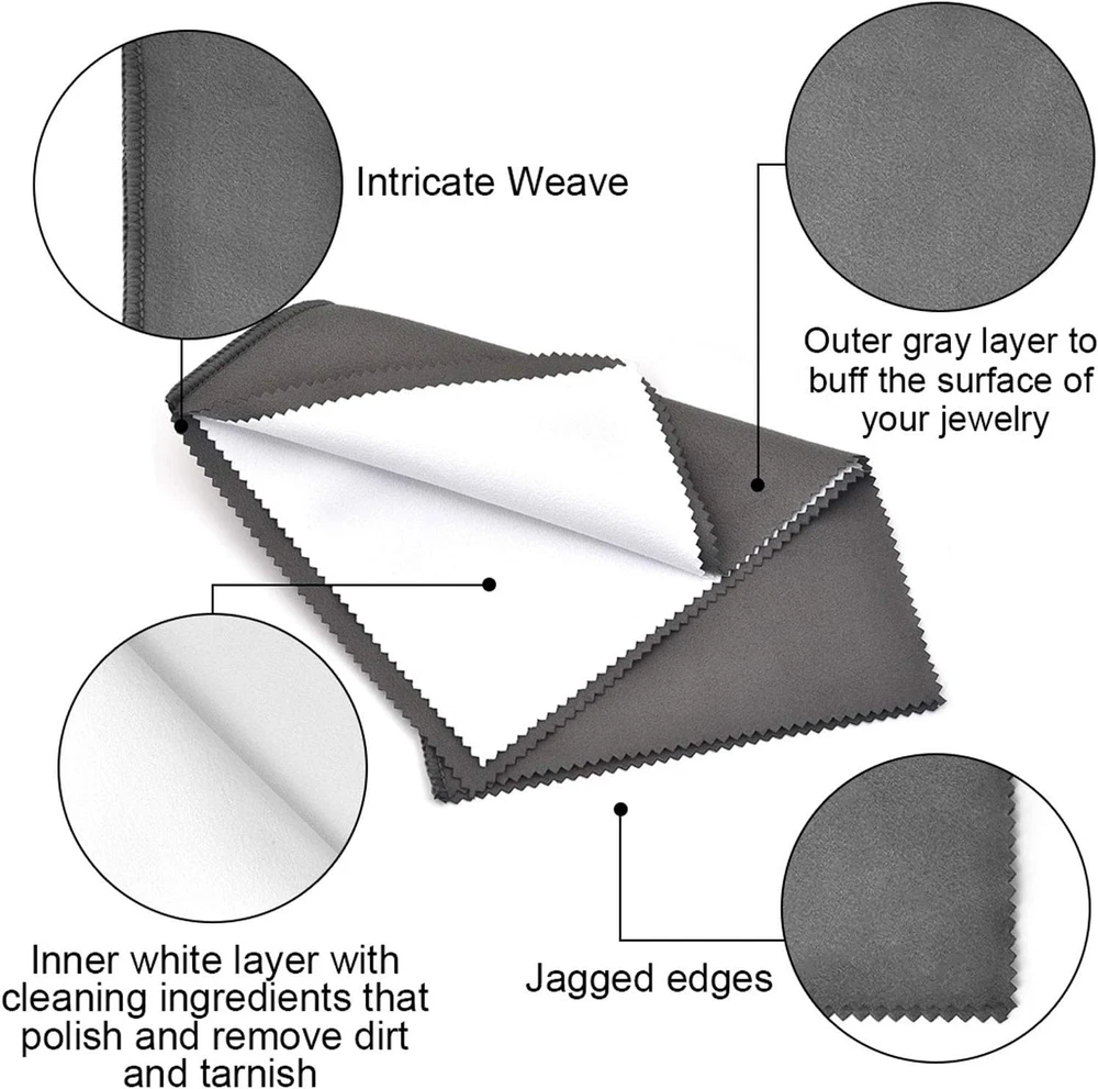Store New Arrivals Add to Favorite View Feedback Contact SEVENWELL 2Pcs Jewelry Polishing Cleaning Cloth Large 10'' X 12'' for Sterling Silver Jewelry Gold, Diamond, Platinum, Precious Stones, Coins (Gray) Description Item model number BCJTE32E4355MVOU6B16VP493 Color gray Country of Origin China Item Weight 2.11 ounces Package Dimensions 6.54 x 4.84 x 0.75 inches Manufacturer SEVENWELL Product Info: Size: Large size jewelry cleaning cloth for easy polishing of silverware and big pieces of jewelry. The size of each cloth opened is 10'' x 12'' ( 25 cm x 31.2 cm ) Color: The surface is gray, the inside is white Ingredient Safety: The inner part is treated with safe materials. Absolutely no effect on your health. Ultra-soft cotton will also keep your jewelry safe from scratches Great Polisher: Let your gold, sterling silver, platinum jewelry, coins, copper, stainless steel, diamond, rhodium, brass, watch and other fine valuables become shiny again! This polishing cloth can remove the dirt and tarnish thoroughly. Also giving a layer of protection to prevent your jewelry or fine valuables from getting tarnishing, keeping its luster Steps: First, use the white interior layer with special cleaning ingredients to remove the dirt and tarnish thoroughly. Next, use the grey outer layer to polish, buff and shine. Watch your jewelry change from old to shiny Notice: reusable but non-washable Product Description ABOUT US We offer the best prices around on high quality products. Our E-store includes media such as books, movies, music and games while offering electronics, toys, sporting apparel, clothing, tools, general home, garden items and more. SHIPPING We are always working hard to ensure your package arrives as soon as possible. Please understand that some factors like weather, high postal traffic, and the performance of shipping companies are outside of our control. We offer free shipping to the lower 48 states and ship within 2 business days of payment, usually sooner. We do not accept P.O. Boxes. Please provide a physical address. RETURNS We offer a 30-Day Return Policy on items which you are not completely satisfied with. You have the option for a full-refund or an exchange of the item. No returns are available on items shipped outside of the USA. PAYMENT We accept PayPal. CONTACT US This page content is yet to come Please ad us to your favorite seller and visit again later Thank You CUSTOMER SATISFACTION We try our very best to make sure every customer is completely satisfied. If there's a problem, message us! We're happy to help.