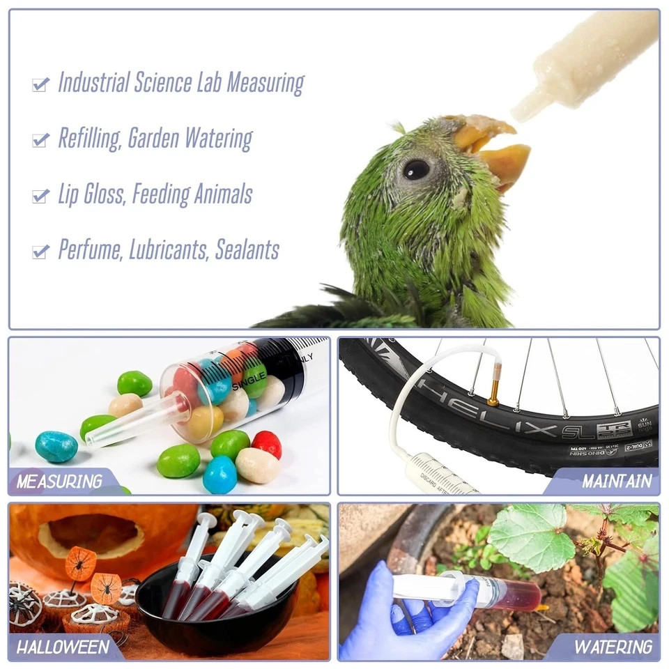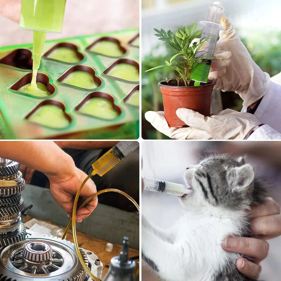 About this item 60ml Syringe with Tube - 1pack 60ml syringe, 1pack 3.2ft silicone catheter, 1pcs 3.2ft plastic hose, 1pcs port adapter (port size is 4mm, for mounting needles and clear tubing). 60ml Large Plastic Syringe - Polypropylene barrel and soft silicone rubber plunger, the plunger is easy to push and pull to prevent liquid leakage, the plunger is coated with silicone oil as a lubricant, while maintaining a seal. Flexible, Multi-combination - 60ml syringe & silicone catheter combination, 60ml syringe & port adapter + transparent tube combination, the plastic tube can be cut at will as needed, can meet different needs. Wide Applicability - Used for measuring and distributing fluids, watering succulents, feeding pets, also can be used for injection and discharge of gasoline or refrigerant in automobiles, as well as lubricating oils, power steering brake fluids, car cleaners, engines oil, etc. USE ATTENTION - 60ml large syringe is for industrial use only. Quickly set super glue cannot be used due to working hours. Make sure that the glue you are trying to use has enough time to load and distribute