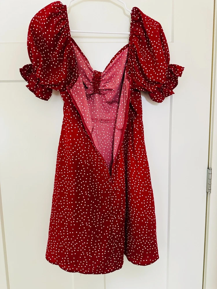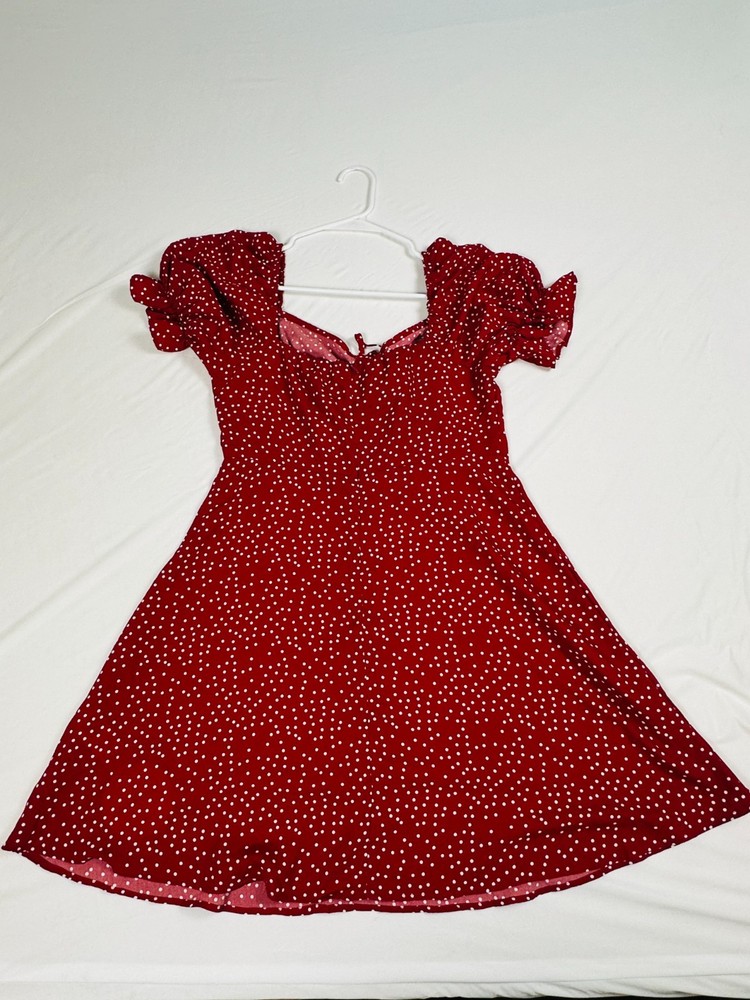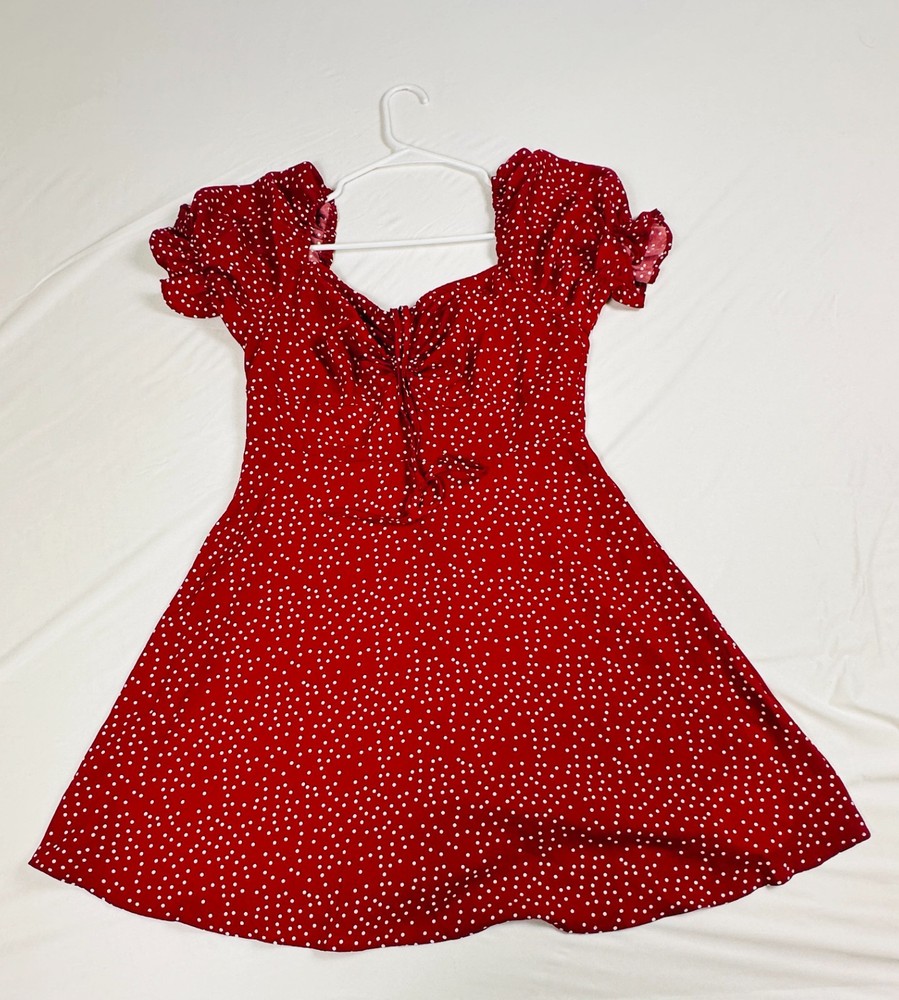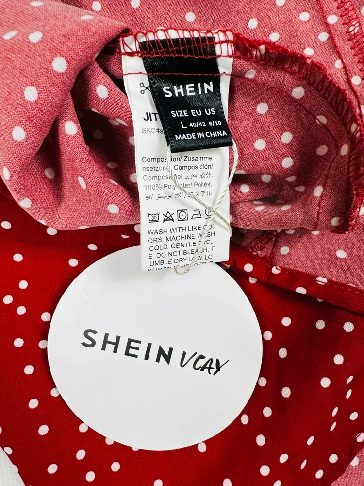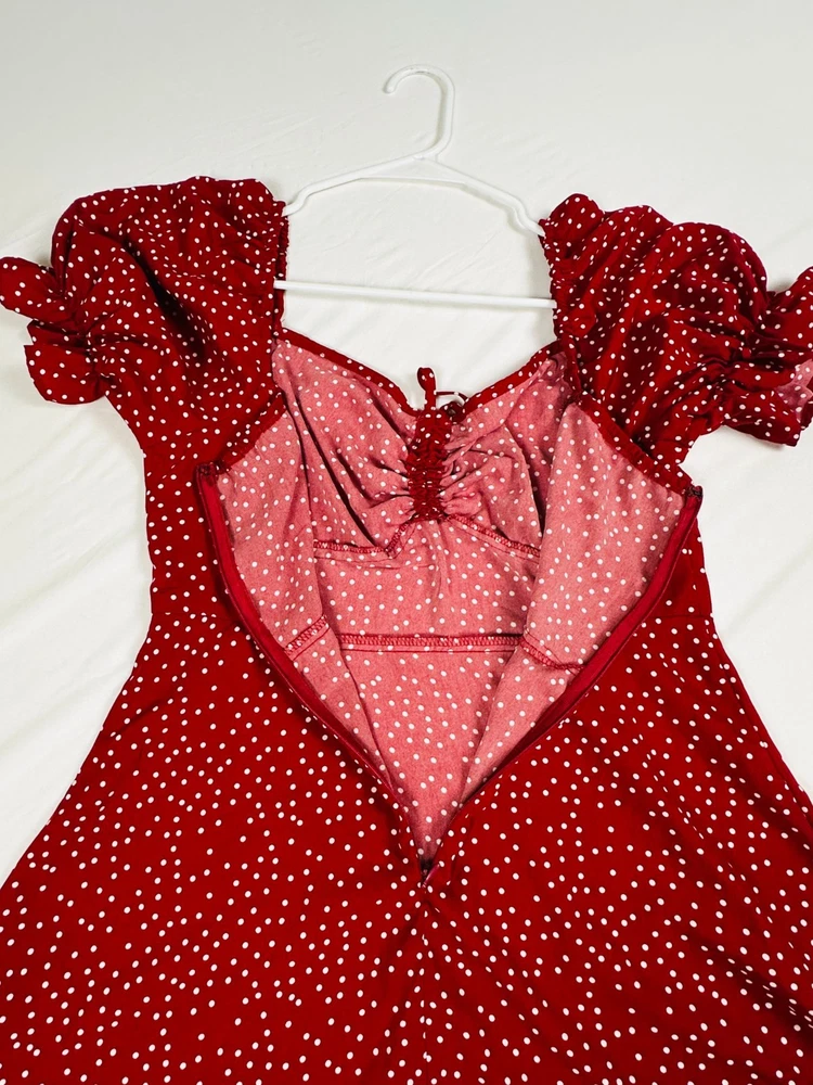 Step into effortless summer style with this SHEIN Vacay Red Polka Dot Dress in a flattering puff sleeve A-line design . The sweetheart neckline with ruched tie detail adds a touch of femininity, while the short ruffled sleeves and flowy fit make it perfect for warm-weather wear. Made from lightweight 100% polyester , this dress is both comfortable and easy to care for. Whether you’re headed to brunch, a beach getaway, or a casual evening out, this dress is sure to be your go-to pick.