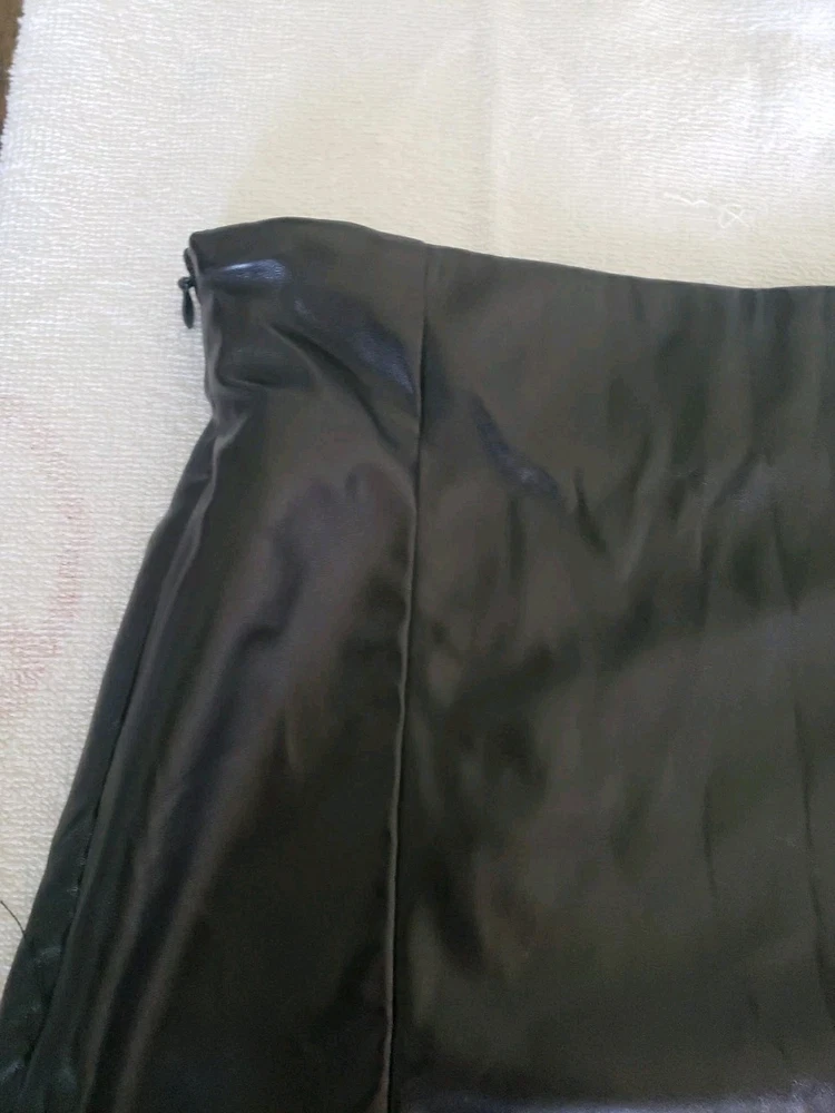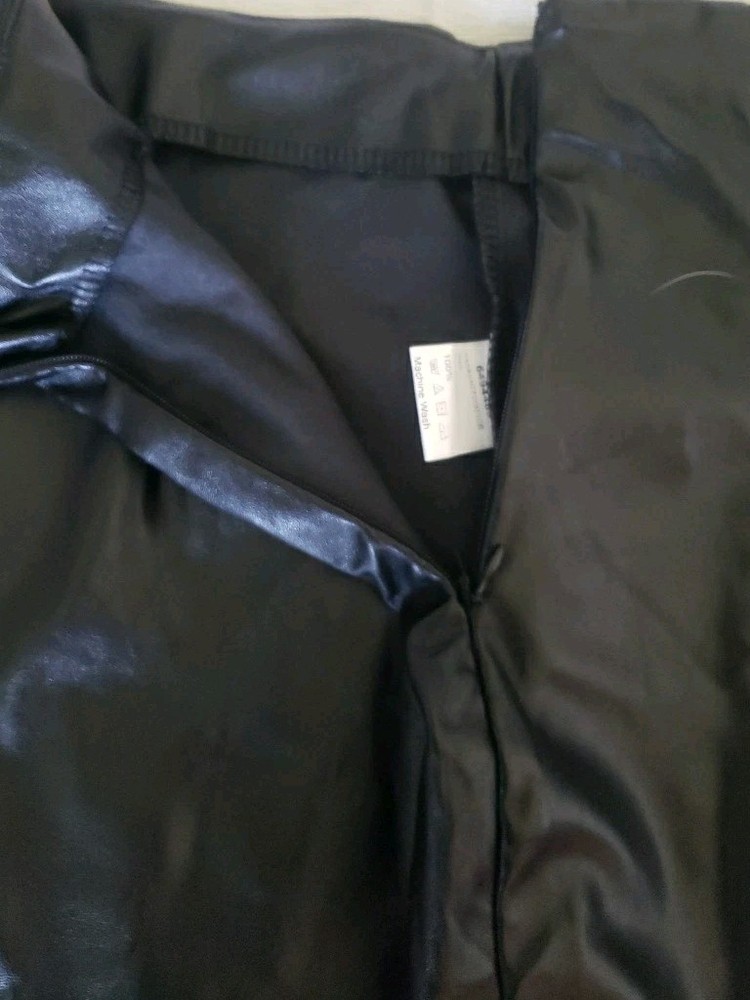 This is a stylish SHEIN black faux leather skirt in size M. It features a side zip closure, a low rise, and a mini length, making it suitable for parties and cocktails. The skirt has a solid pattern, accented with a zipper, and is designed with a lightweight and stretchy fabric for comfort. Perfect for adding a sexy touch to your outfit, this versatile skirt can be worn in various seasons.