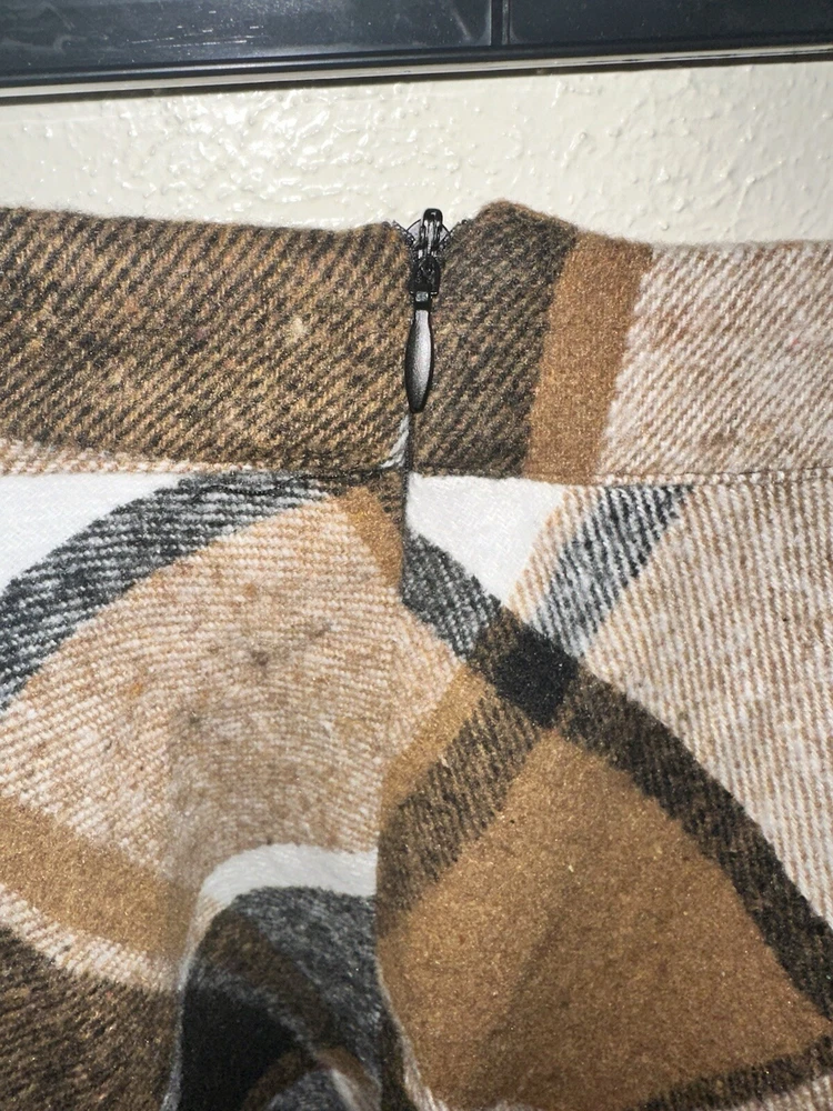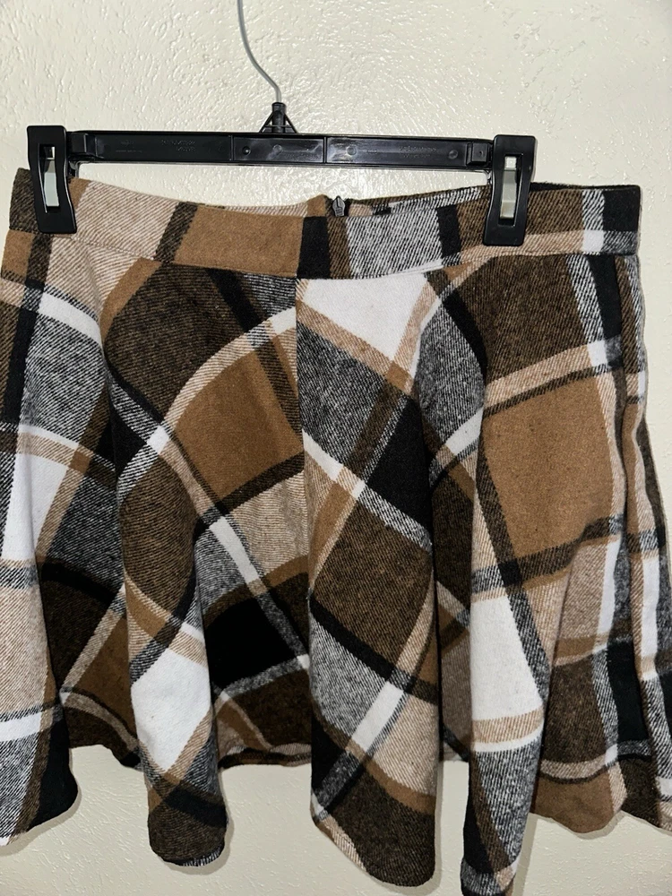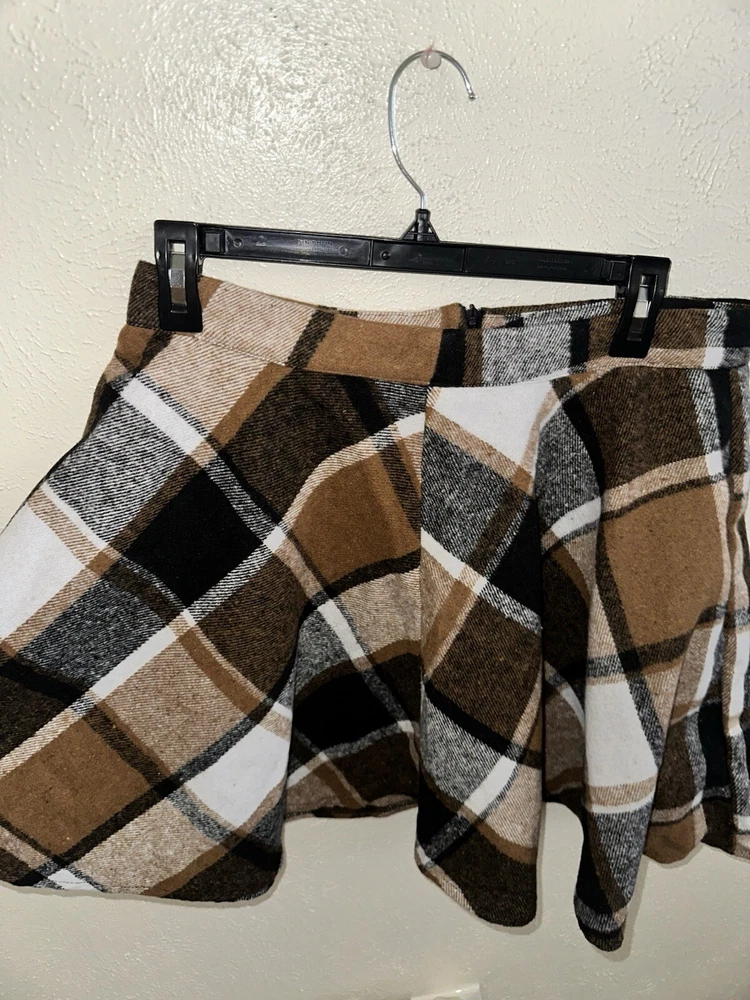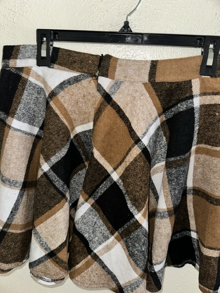This SHEIN Women’s Plaid Umbrella Skirt is a stylish and trendy clothing item for women. The skirt features a plaid pattern in brown, made from durable polyester material in a size L. It has a zip closure and falls under the category of women's skirts. The skirt is designed to be comfortable and fashionable, perfect for adding a touch of sophistication to any outfit.