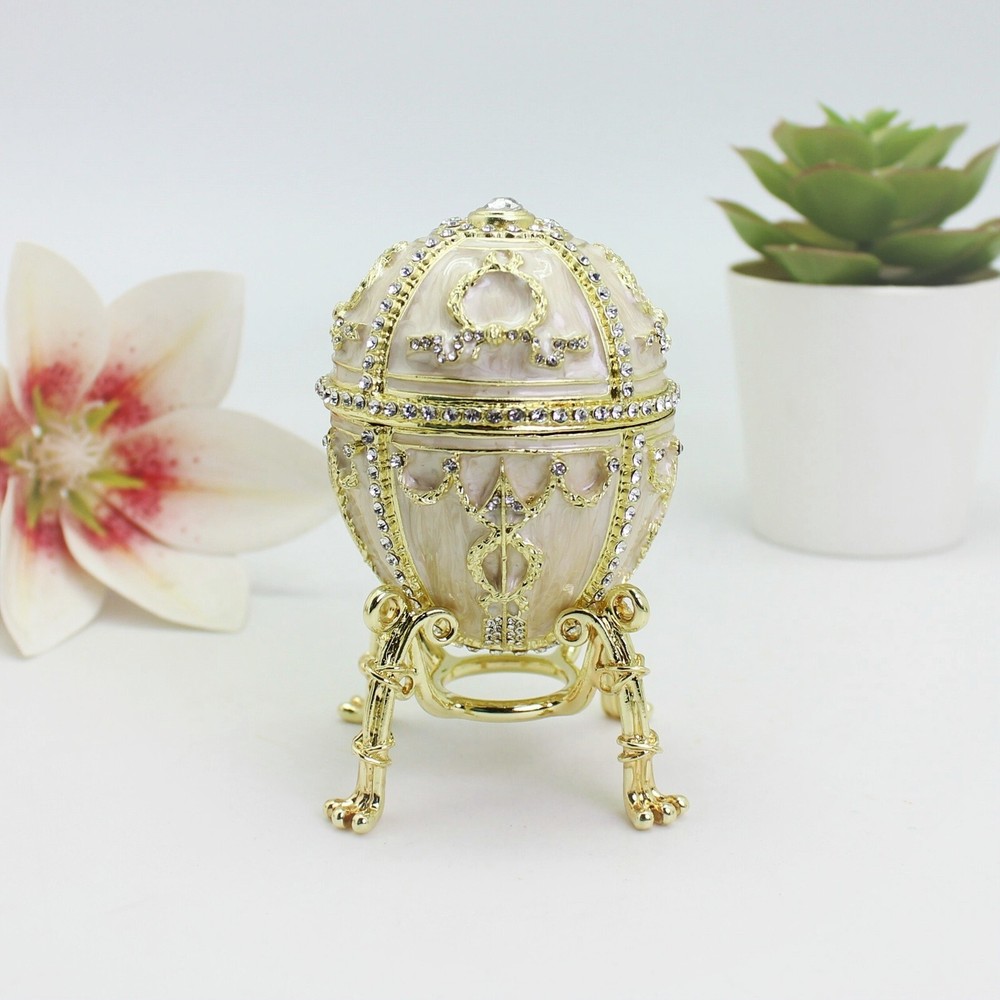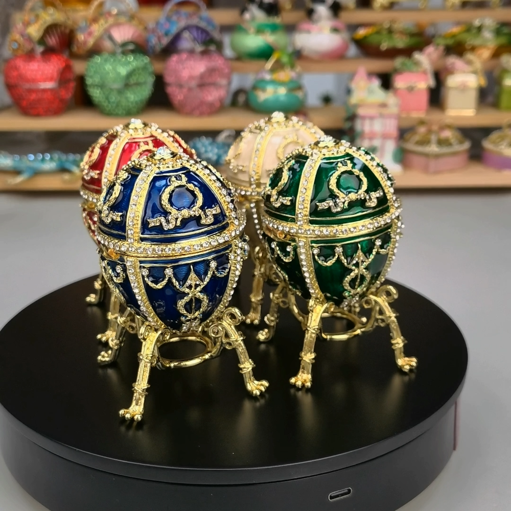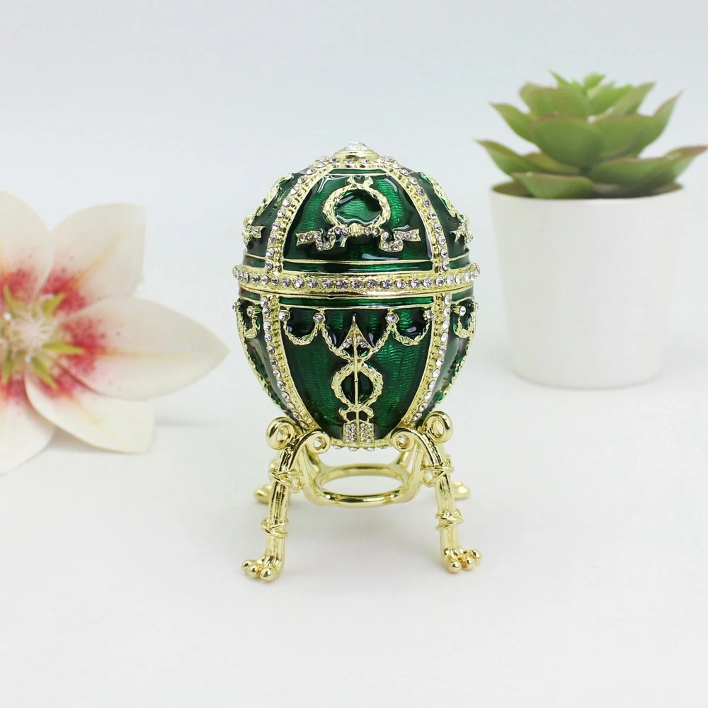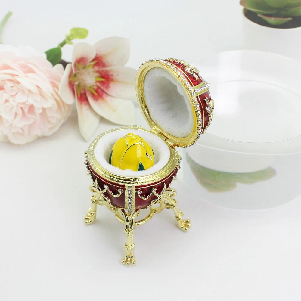 【 Materials】Pewter Enamel Size:5.3x9cm Made in GuangDong 【 Package】Gift Box 100% Brand New Handmade Pewter Enamel Trinket Box Handmade by masters with 20+ Years Experience Can be use for Birthday Gifts,Wedding Favor,Christmas Gifts,Home Decorative This collectible trinket box is meticulously crafted from fine pewter I t is hand enameled and then lavishly inlaid with crystals by skilled artisans. Opens on a hinge to reveal the hand painted interior Magnetic closure to keep the box shut securely , T his jewelry trinket box is made of a pewter-like alloy and finished with a high polished finish Versatile Use: Perfect as both a decorative piece and a functional trinket box I deal for storing small precious items while bringing fortune symbolism