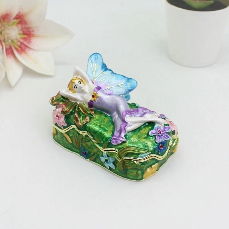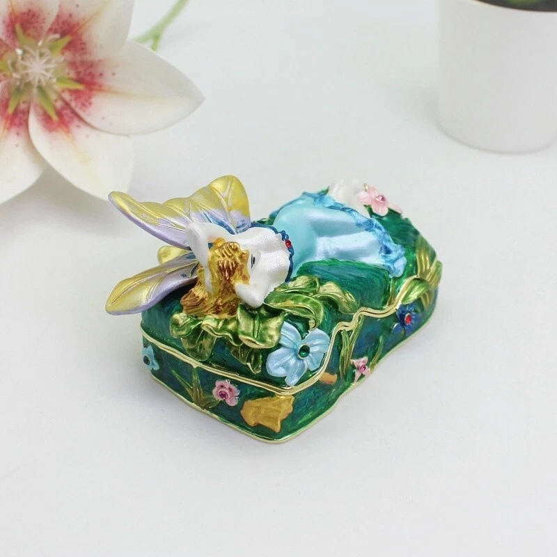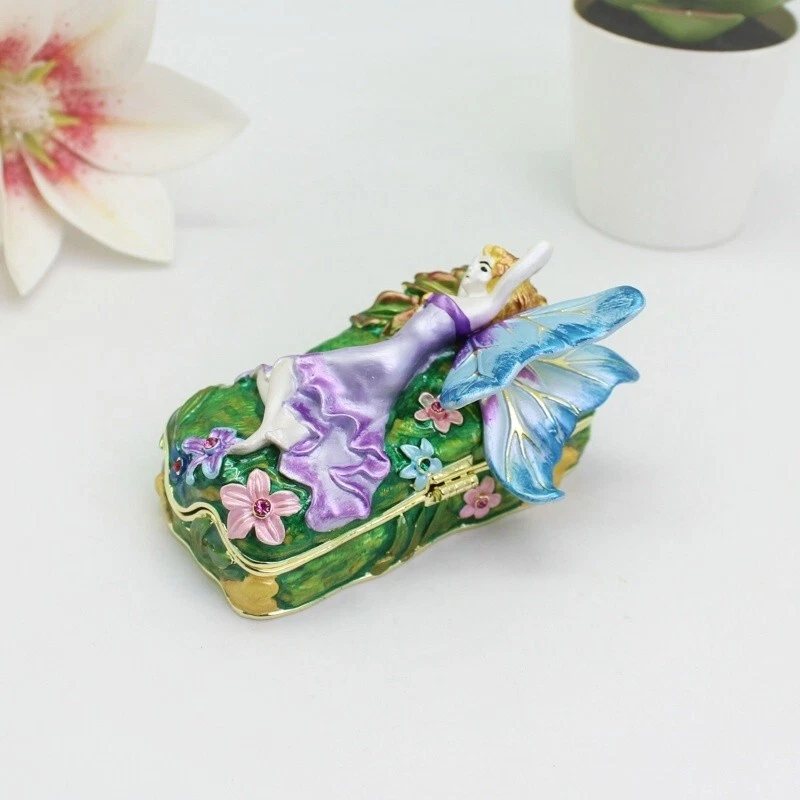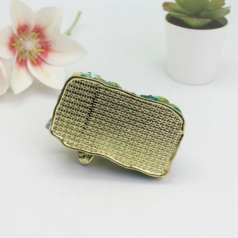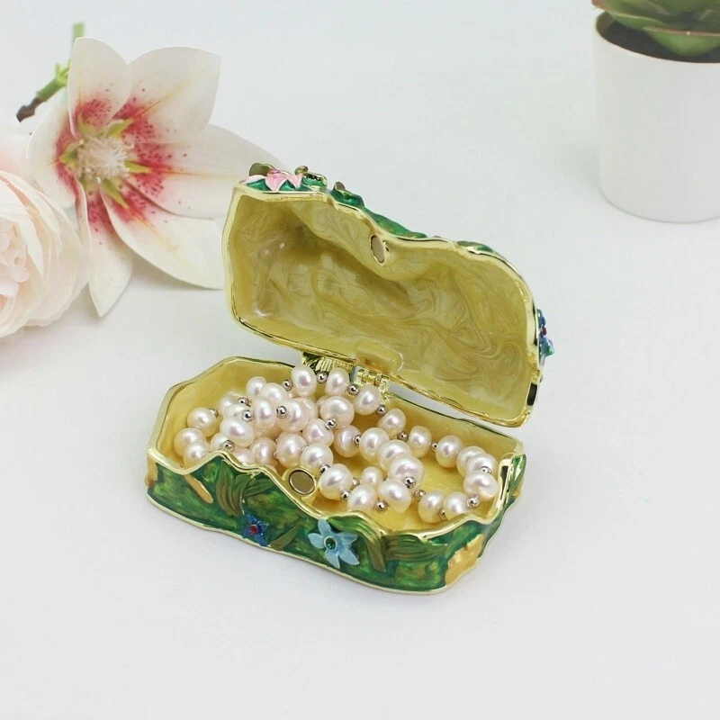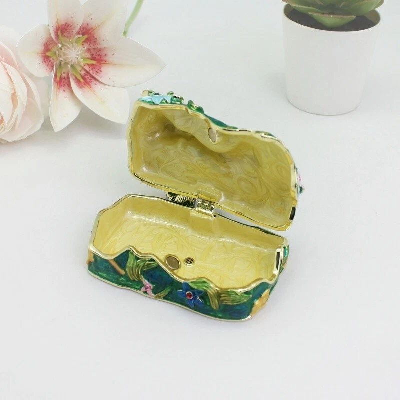 【 Materials】Pewter Enamel Size:9x6.3x4.8cm(LWH) Made in GuangDong 【 Package】Gift Box 100% Brand New Handmade Pewter Enamel Trinket Box Handmade by masters with 20+ Years Experience Can be use for Birthday Gifts,Wedding Favor,Christmas Gifts,Home Decorative This collectible trinket box is meticulously crafted from fine pewter I t is hand enameled and then lavishly inlaid with crystals by skilled artisans. Opens on a hinge to reveal the hand painted interior Magnetic closure to keep the box shut securely , T his jewelry trinket box is made of a pewter-like alloy and finished with a high polished finish Versatile Use: Perfect as both a decorative piece and a functional trinket box I deal for storing small precious items while bringing fortune symbolism