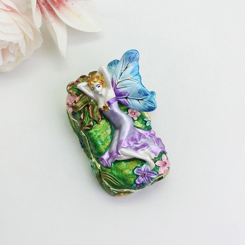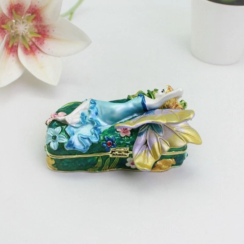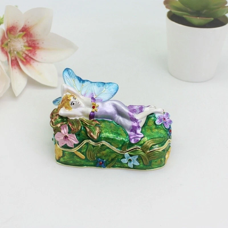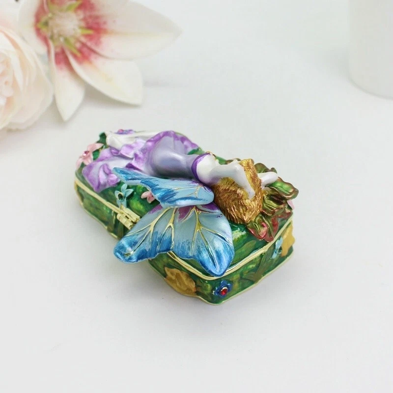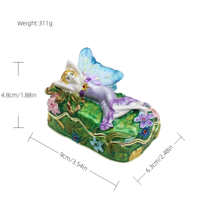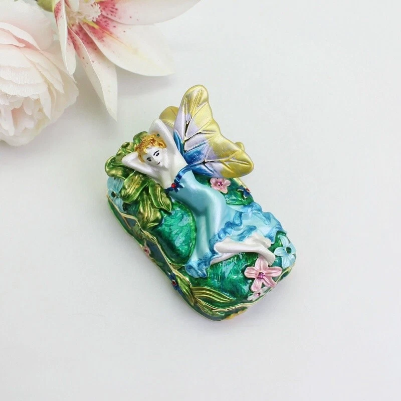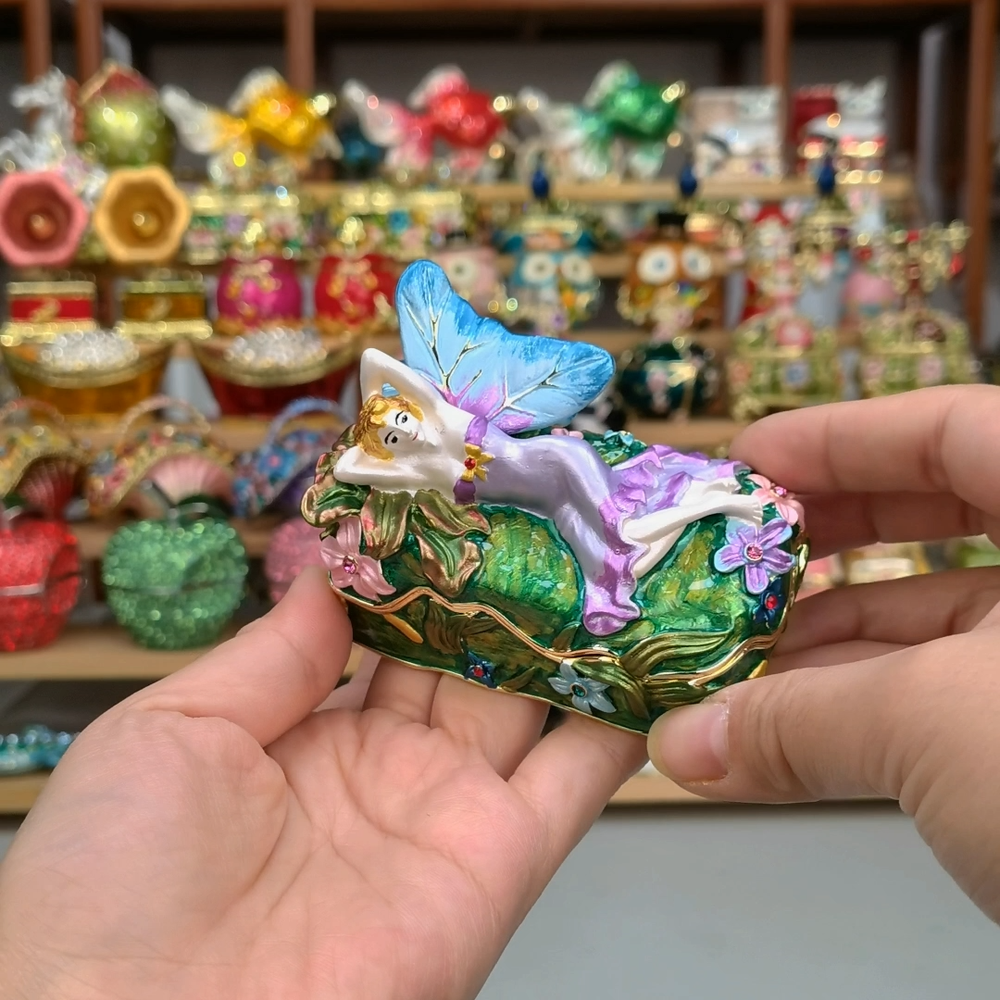【 Materials】Pewter Enamel Size:9x6.3x4.8cm(LWH) Made in GuangDong 【 Package】Gift Box 100% Brand New Handmade Pewter Enamel Trinket Box Handmade by masters with 20+ Years Experience Can be use for Birthday Gifts,Wedding Favor,Christmas Gifts,Home Decorative This collectible trinket box is meticulously crafted from fine pewter I t is hand enameled and then lavishly inlaid with crystals by skilled artisans. Opens on a hinge to reveal the hand painted interior Magnetic closure to keep the box shut securely , T his jewelry trinket box is made of a pewter-like alloy and finished with a high polished finish Versatile Use: Perfect as both a decorative piece and a functional trinket box I deal for storing small precious items while bringing fortune symbolism