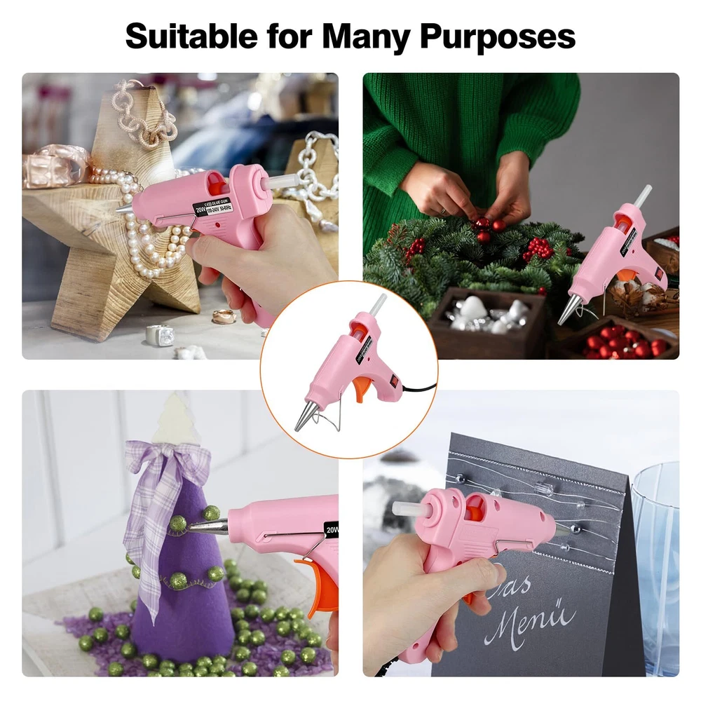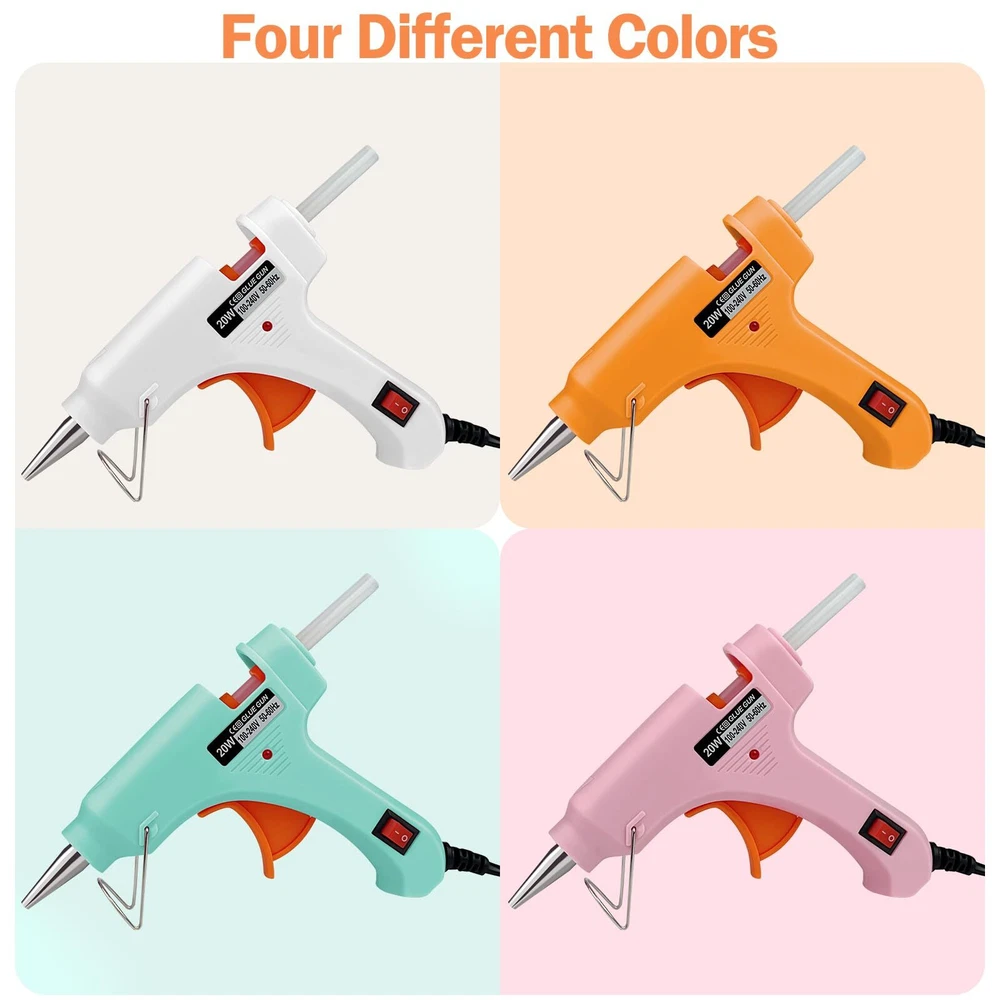 【Super Fast Heating】: This mini hot glue gun heats up and releases glue within 1-3 minutes and fits φ0.28inch(7mm) glue sticks. 【Simple Operation】:Just insert the glue sticks, connect your hot melt gun to the power, pull the trigger to heat up. The clever designed nozzle tip ensures precision use without dripping, preventing glue waste. Please do not pull out the glue stick after use. 【Convenience and Safe】: Ergonomic design handle offers comfortable operation. Its compact and lightweight features help you use easily. This glue gun has the Fold-up holder and make it stand upright when in standby, easy and flexible to use. The on and off power switch makes it safe for your children. 【Useful and Multipurpose】: This hot glue gun with glue sticks is an ideal tool for various DIY, such as crafts & arts, home repair, making Christmas decoration, gifts. It can work well with plastic, glass, paper, cotton, fabric and other materials. Also great for kids making crafts! 【All-in-One Kit】8pcs hot glue guns with 30pcs strong adhesive hot glue sticks, glue gun kit has everything to cater your passion for crafting and DIY projects right away. Note: Never touch the nozzle during and after use, prevent scalding.