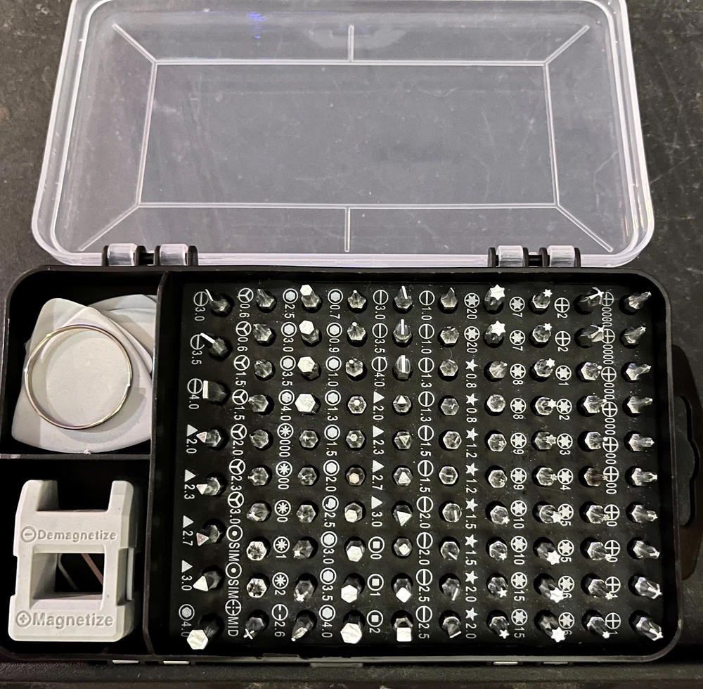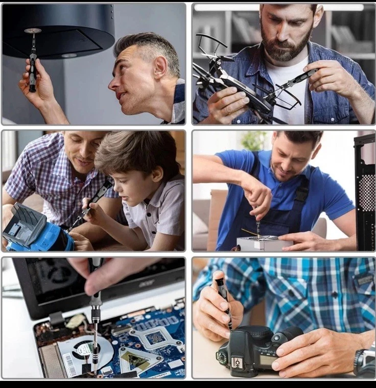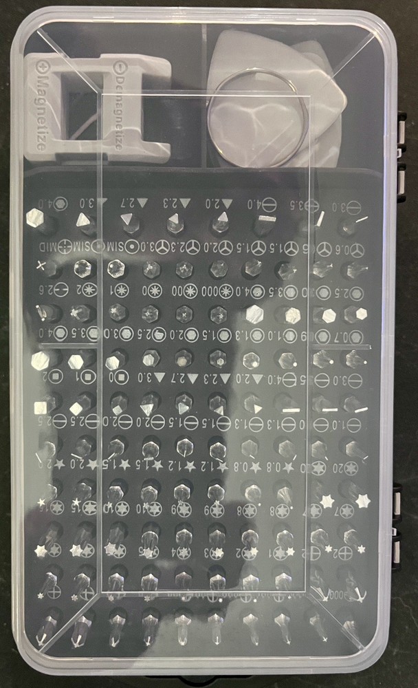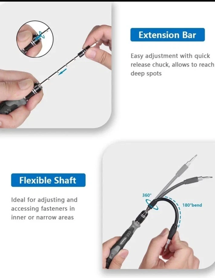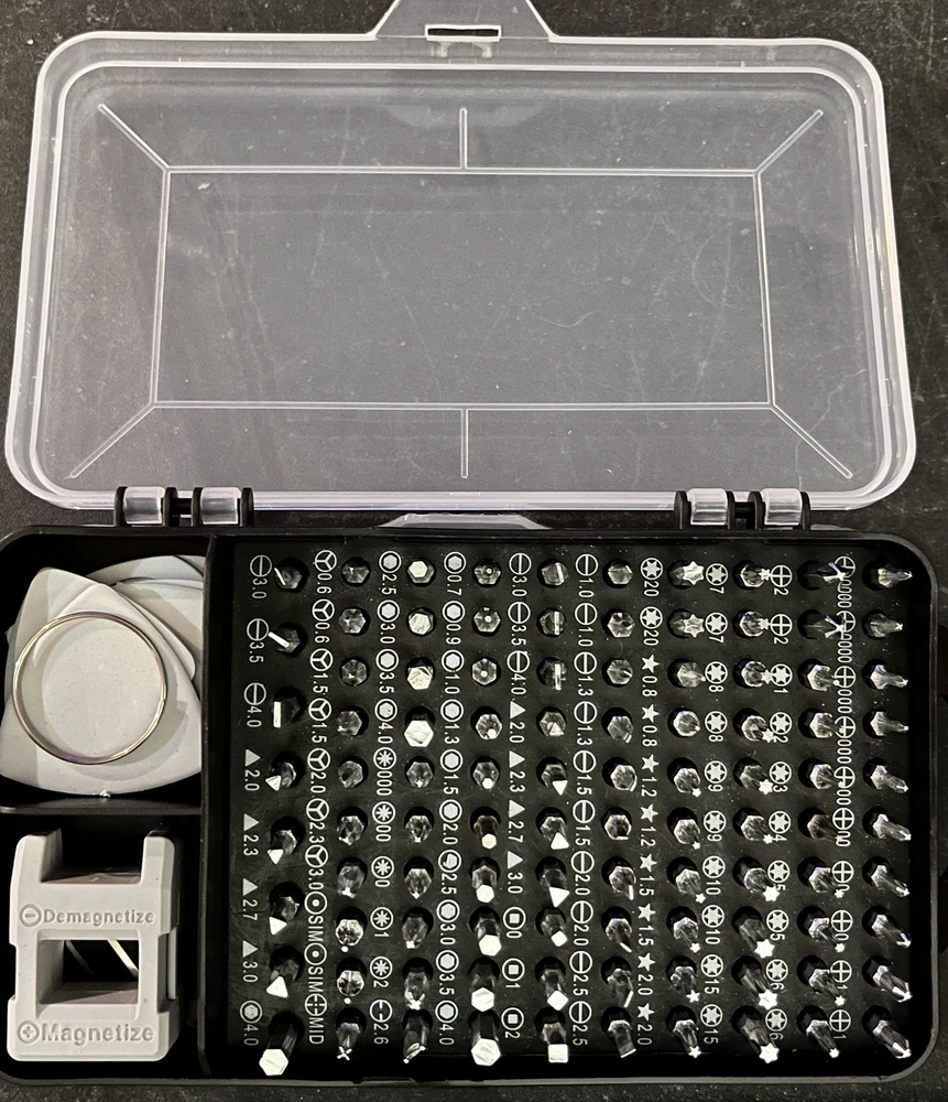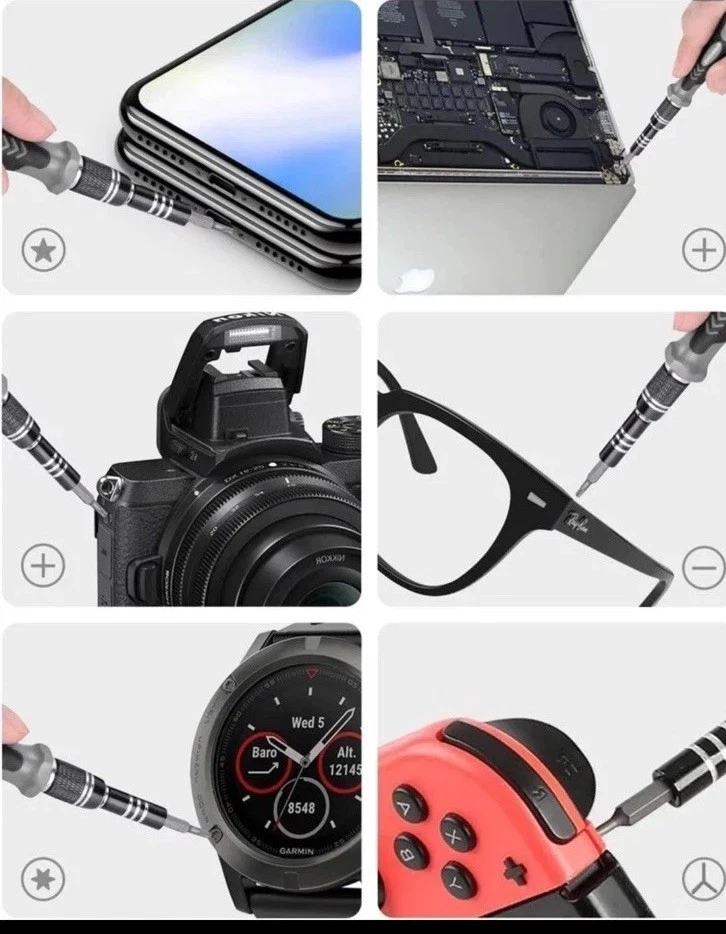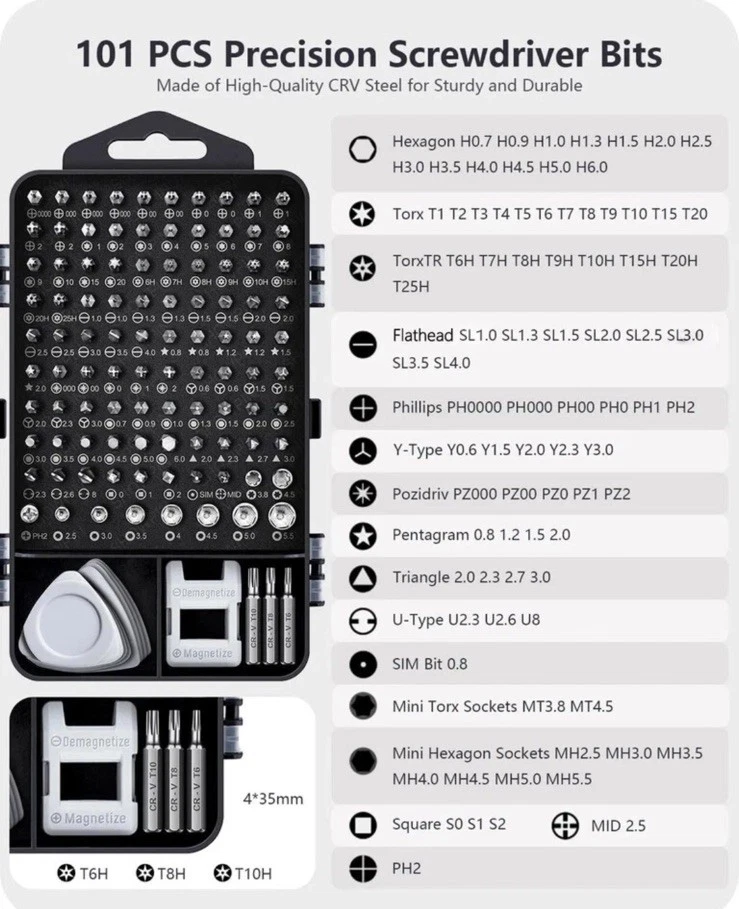 The SHOWPIN 122 in 1 Precision Computer Screwdriver Kit is a versatile tool set designed for computers, laptops, smartphones, tablets, and home appliances. With a 4mm Precision head size and made of Chrome Vanadium Steel, it offers a wide range of screwdriver types including Torx, Hexagon, Schlitz, Phillips, TorxTR, Y-Type, and Pozidriv. The grey color and compact dimensions of 6.3 x 3.54 x 2.36 inches make it convenient for portable use. This kit from SHOWPIN, a trusted brand, has 126 pieces, making it a comprehensive solution for various repair and maintenance tasks.