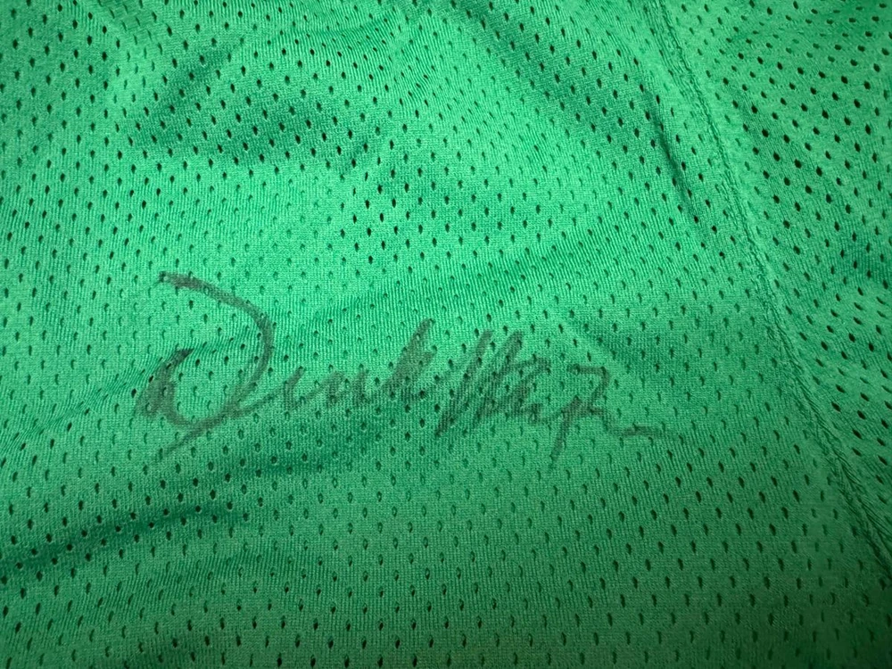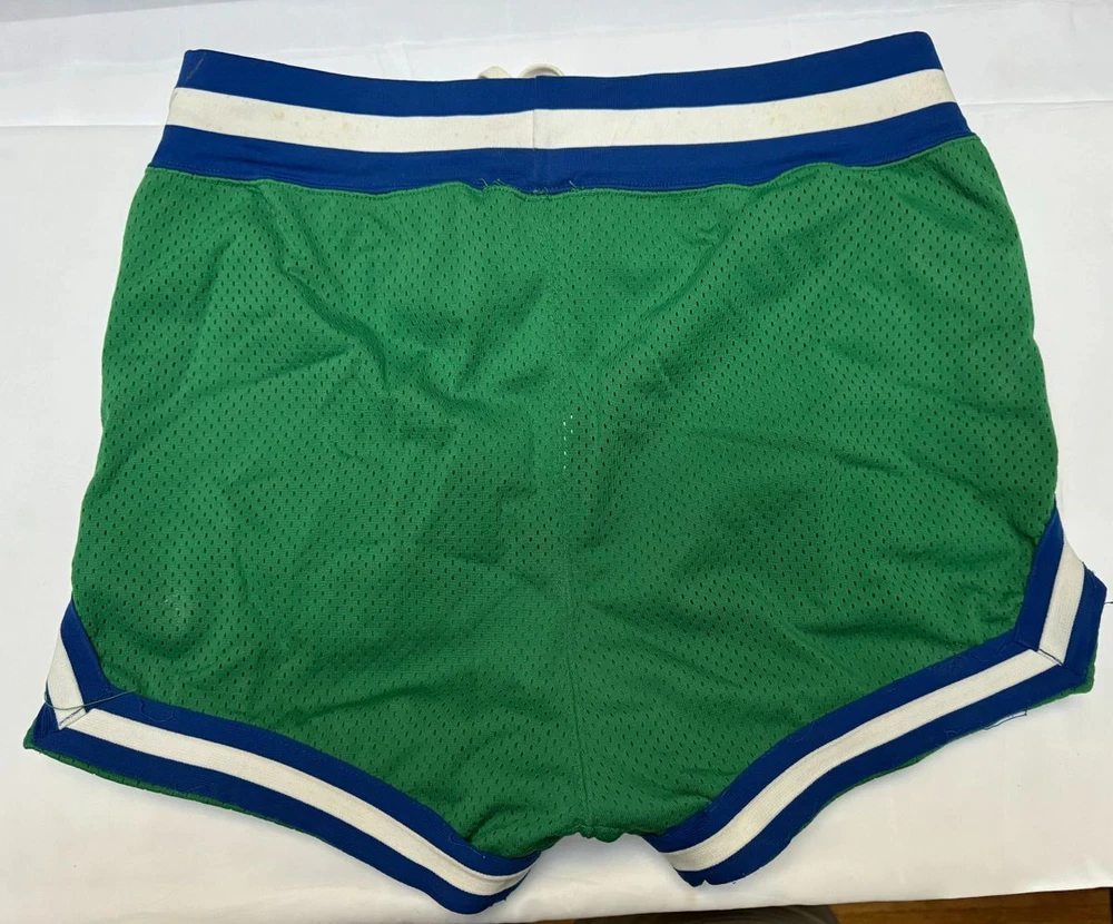 Derek Harper signed this pair of game used Dallas Mavericks shorts in the 1980s. The shorts were produced by Powers Manufacturing Company and are size 34. Harper's No. 12 is written in Sharpie on the label. Shipping is free!