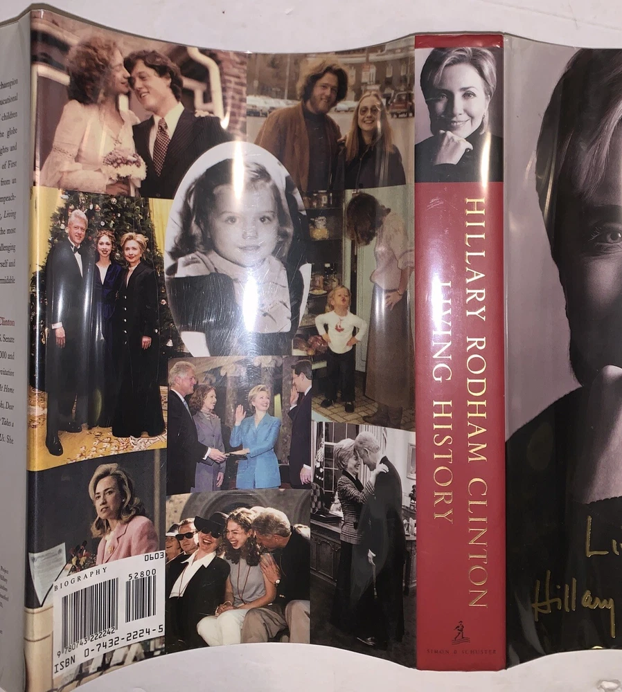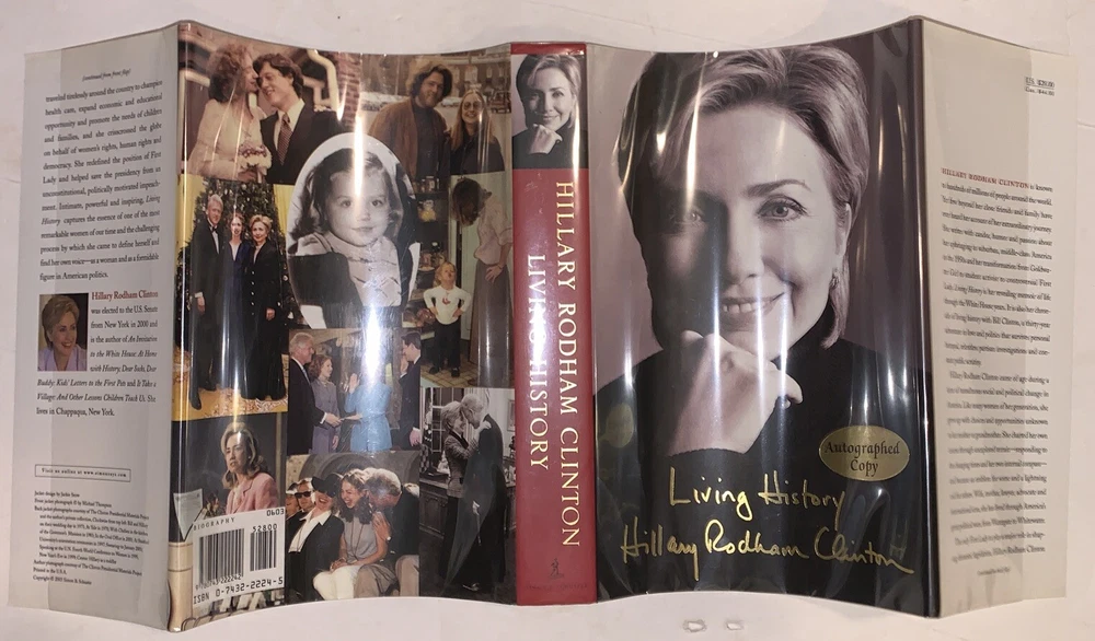 Living History by Hillary Rodham Clinton New York: Simon & Schuster 2003 First Trade Edition, First Printing Signed by Hillary Clinton on the title page. Octavo, xi, 562 pages, publisher's original pictorial dust jacket. Publisher's original gilt lettered, blind stamped black cloth over black boards. Illustrated with sections of black and white photographs. Dust jacket now in protective mylar sleeve. Laid in, is a catalogue description from a prior dealer [Bauman Rare Books]. In fine condition. If you have any questions, feel free to ask, and don't forget to check out my other listings.