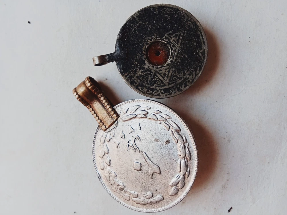 SILVER ANCIENT AMULET ISLAMIC PENDANT ARABIC ANTIQUE RARE COIN BERBE WITH STONE Shipping We dispatch orders promptly from Monday to Friday. Each shipment is securely packaged and includes a Tracking Number for your convenience. Estimated delivery time is between 10 to 20 business days. If your item has not arrived within this timeframe, please contact us for assistance. Payment For your convenience, we accept all payment methods supported by eBay, ensuring a smooth transaction process. Return Policy Customer satisfaction is our top priority. If you encounter any issues with your purchase, our flexible return policy allows for a full refund on eligible returns. If you receive a damaged item or are dissatisfied with your purchase, please reach out to us immediately for prompt resolution. Feedback We strive for 100% customer satisfaction. If you have any concerns, please contact us directly before leaving Neutral or Negative Feedback. We are dedicated to resolving any issues swiftly. Global Shipping Our shipping services extend worldwide, utilizing registered mail with Tracking Numbers provided once your order has shipped. Item Dating If we have not included the dating of an item in the title or description, it is because we cannot confirm its age. We prefer not to provide dating in many cases to avoid misleading our customers. Your satisfaction is our priority! T hank you for shopping with The Treasured Past. Please take a look at my other items! I have a special collection of treasures that you won't want to miss. Act now and find something truly unique!