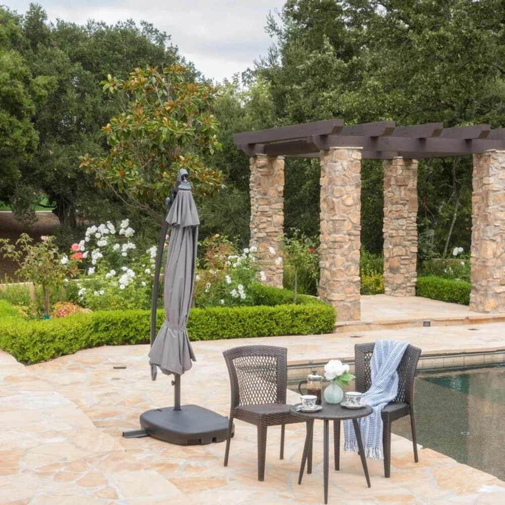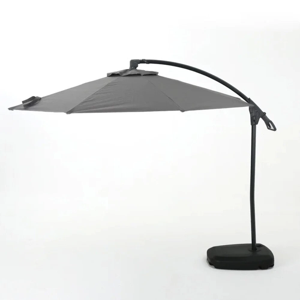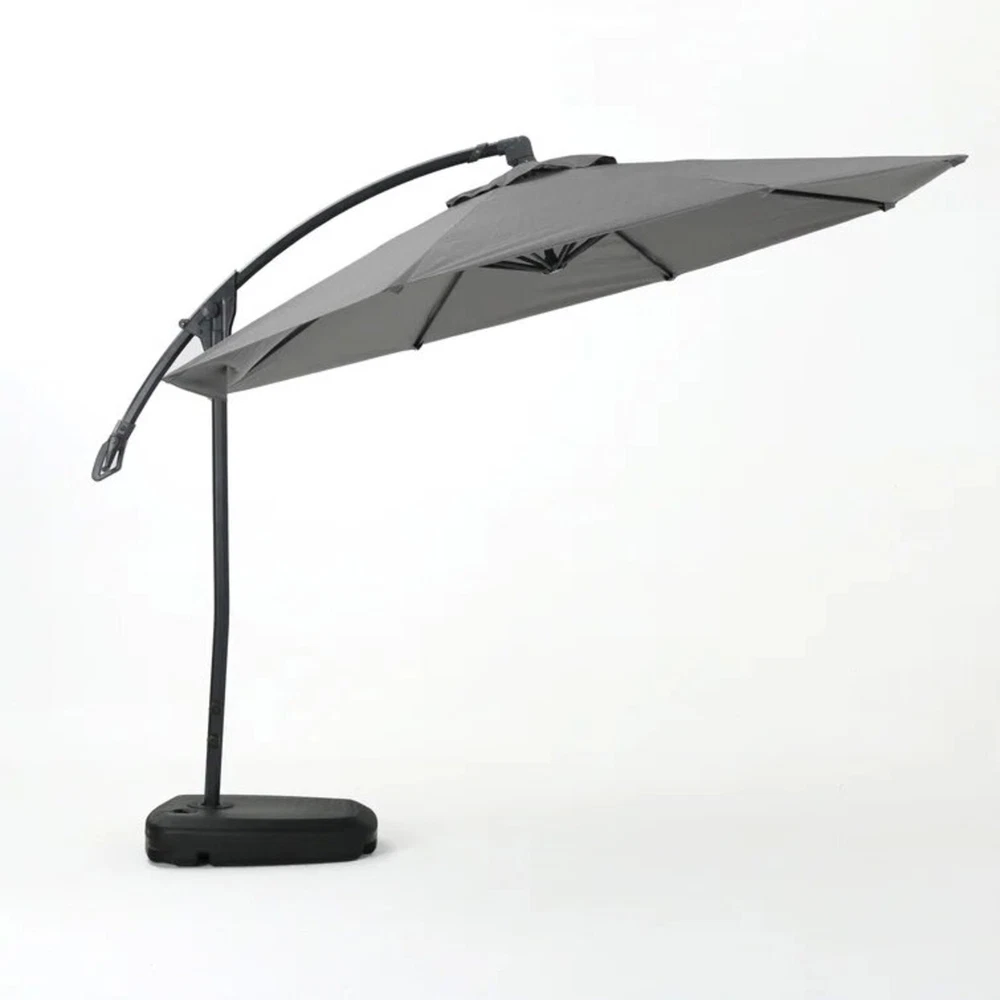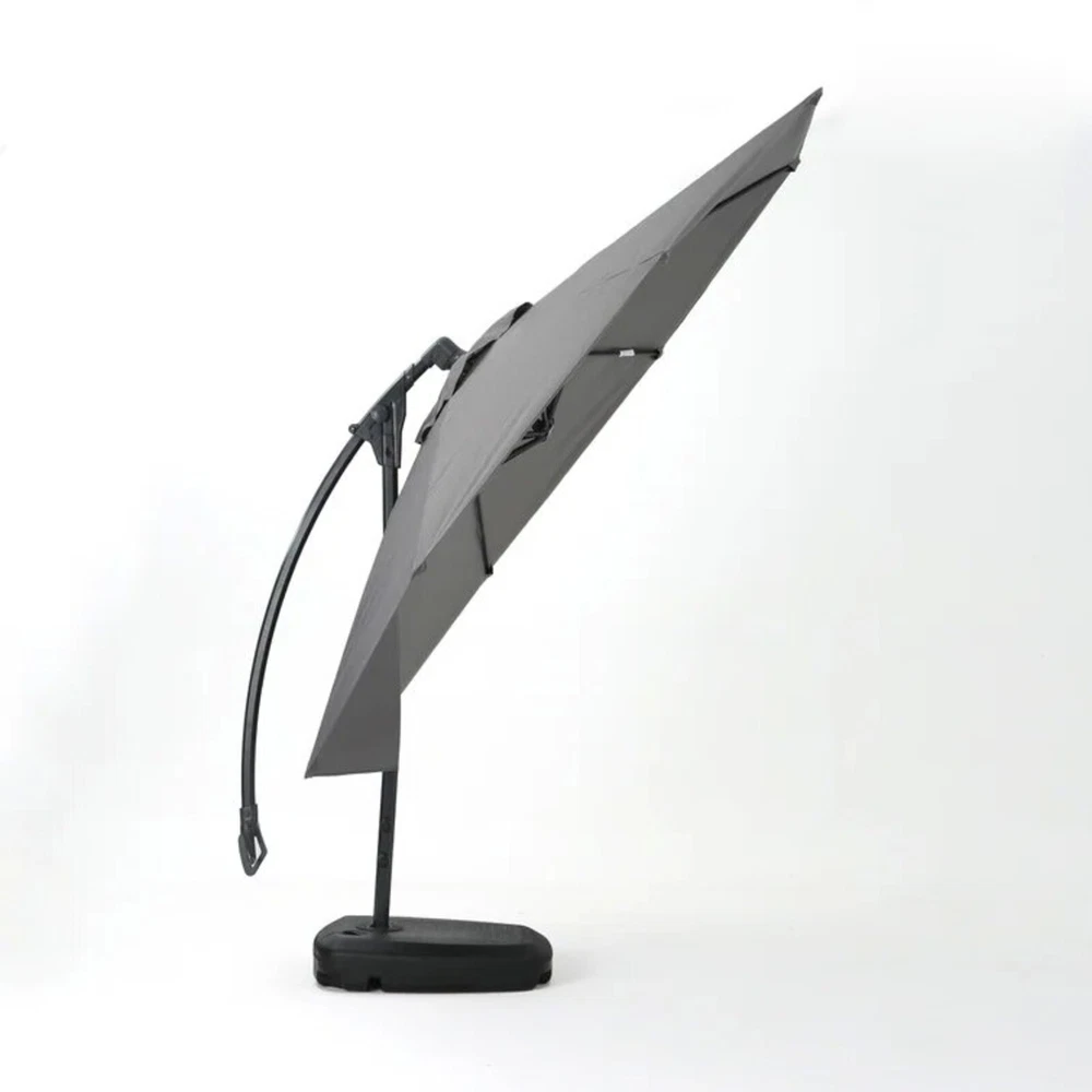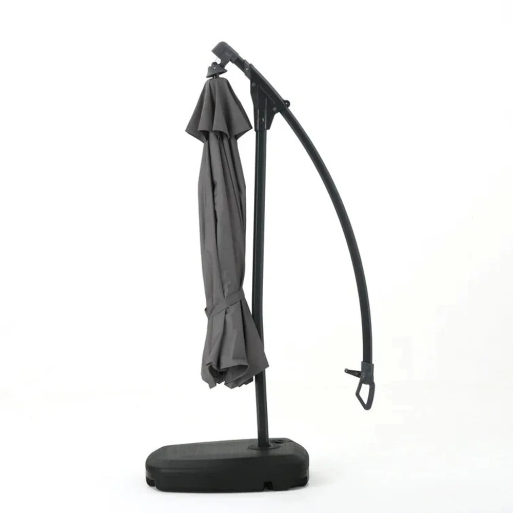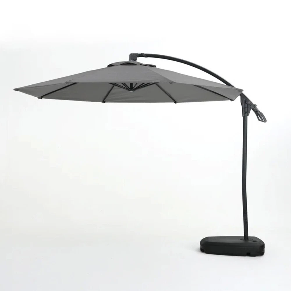 Product Information Main Color: Gray Use Case: Garden & Outdoor Shades Type: Umbrellas Main Material: Aluminium Product Dimensions Item Length (in.): 116.50 Item Width (in.): 116.50 Item Height (in.): 111.00 Weight (lbs.): 22.05 Package Size Sub-item 1 Package Quantity:1 79.00 * 15.75 * 7.00 in 29.96 lbs Sub-item 2 Package Quantity:1 32.50 * 24.25 * 6.50 in 16.98 lbs Product Features Modern style: with clean, precise lines, our canopy umbrella is created with a chic, minimalistic aesthetic and functionality in mind. Minimum counterweight: this umbrella requires a minimum of 100 lbs. Of counterweight to stand correctly. Weather resistant: this umbrella is designed and tested to resist mild weather conditions. We always advise covering, storing, or providing other protection to our furniture in the event of heavy or repeated exposure to the elements, including water and UV rays. Aluminum frame: this umbrella is built with lightweight aluminum, creating a versatile yet durable frame. Base included: this umbrella set comes with a resin-made base, complete with a drainage hole, that you can fill with water to weigh your umbrella down.
