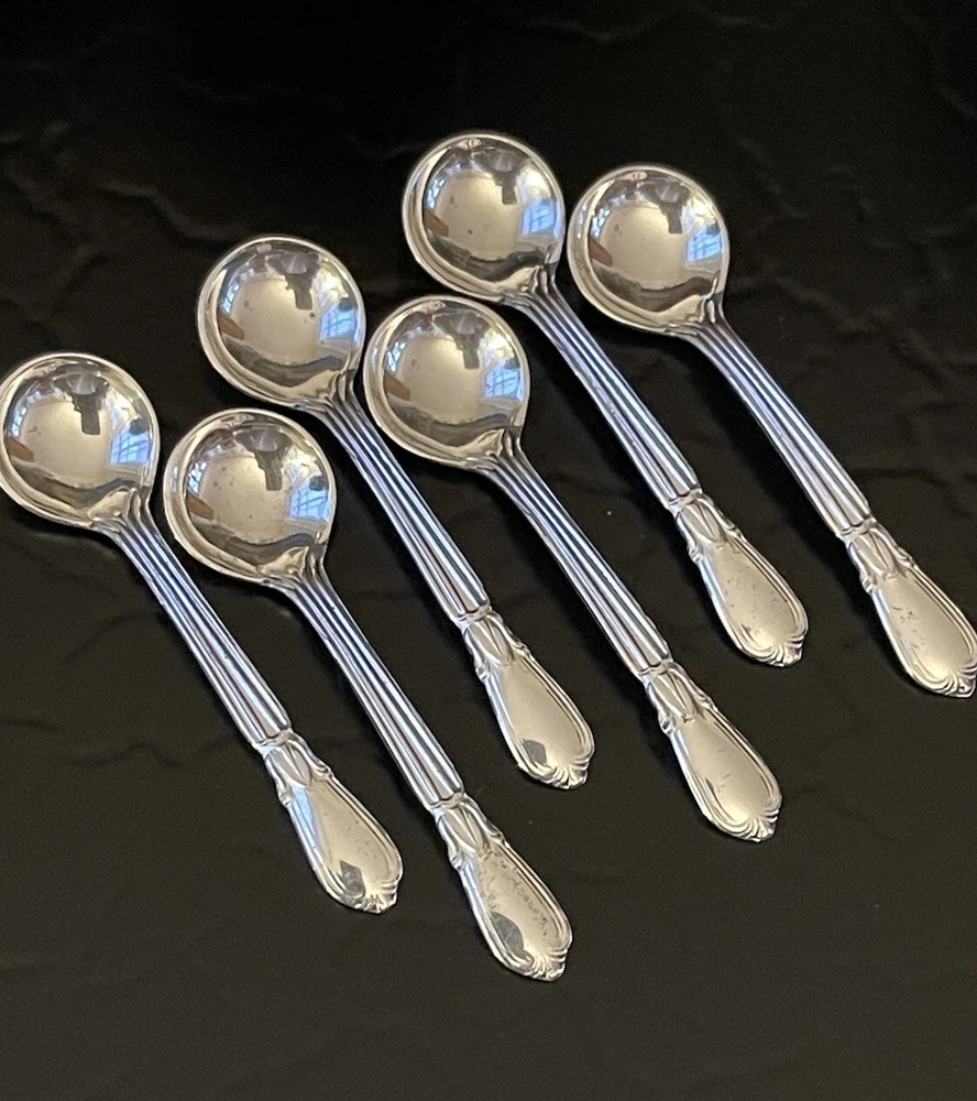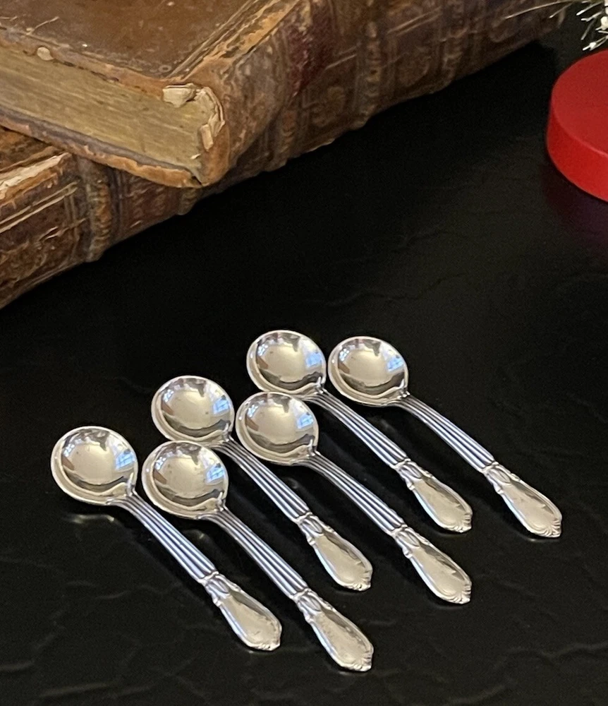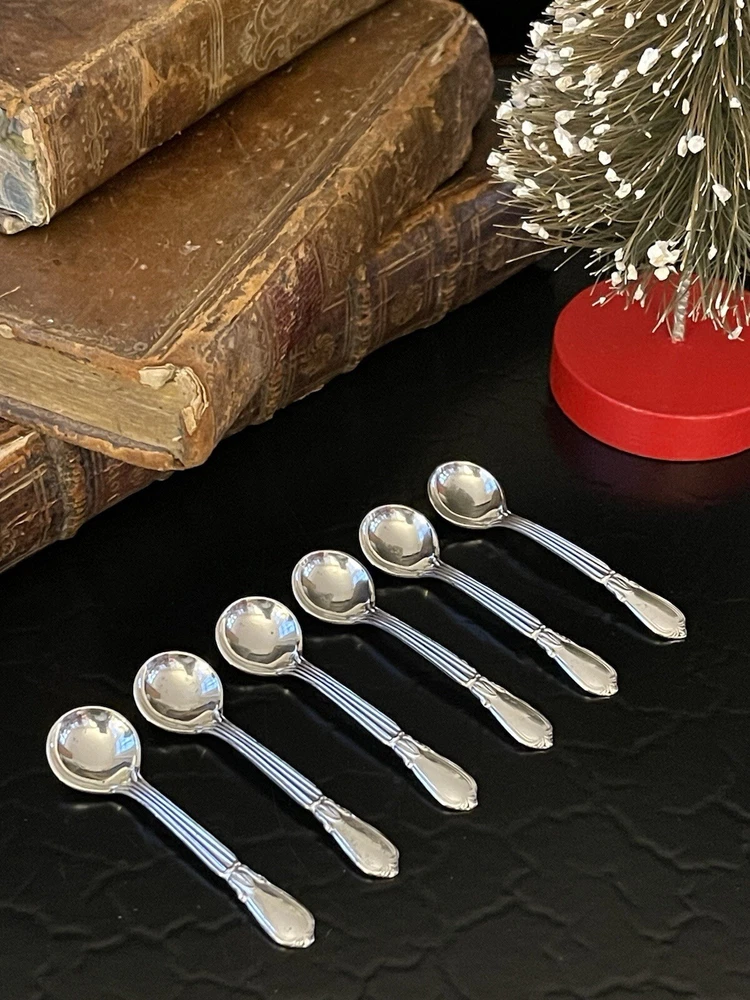 Stunning Rare Quality Art Deco Marked Whiting Troubadoud Sterling Silver Salt Spice Petite Serving Spoon Set of Six β’ Length 2.5β β’ Excellent Condition β’ Rich Luster β’ Kindly View Photo Gallery β’ Marked Sterling to Verso β’ 0.633 ozt Here we have a lovely rare stylish set of six Whiting Troubadour sterling silver petite art deco style salt serving spoons. In a sumptuous design and beautifully modelled in impossibly sweet petite scale, this dreamy scarce quality American made set features an art decor motif pattern, a signature design introduced by Whiting produced between 1932-1950. This a stunning and stylish period example of turn of American aesthetic to own and enjoy. In diminutive scale and quality gauge sterling silver, this stunning six piece set is sure to delight every admirer when enjoyed for display or use. The condition is superb and the patina is smooth and shiny with a rich luster. This scarce and discontinued item has a glorious look and feel to enjoy for generations. Display ready. Happy Bidding!!