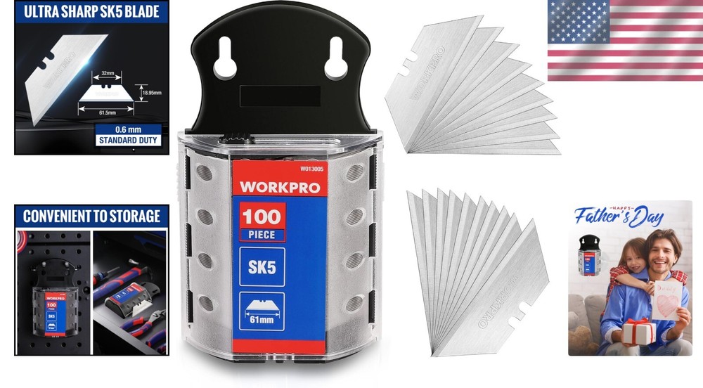 SK5 Steel Utility Knife Blades 100-Pack - Perfect for All Cutting Tasks ‹ › ‹ › ‹ › ‹ › ‹ › ‹ › ‹ › ‹ › ‹ › SK5 Steel Utility Knife Blades - 100-Pack Perfect for All Cutting Tasks Enhance your craftsmanship with this exceptional set of utility knife blades, meticulously engineered for precision and durability. Each blade possesses a sharpness that slices through a variety of materials with ease, making your cutting tasks effortless and efficient. Key Features: Super Versatility: Engineered to fit most standard and fixed utility knives, these blades ensure a perfect match for any cutting tool. Affordable & Practical: Each pack contains 100 rigorously tested blades stored in a robust case for safe storage and easy disposal. Long-lasting Durability: Crafted from high-quality SK5 steel, these blades boast exceptional resistance to wear and tear. Superior Sharpness: Designed to tackle a wide range of materials, including cardboard, leather, linoleum, rope, and soft metal, ensuring clean and precise cuts every time. Why Choose Our SK5 Steel Blades? When quality and performance are non-negotiable, you need blades that you can rely on. Our Utility Knife Blades not only offer exceptional sharpness but are also built for longevity, making them a wise investment for any DIY enthusiast or professional tradesperson. Say goodbye to dull blades and hello to cutting excellence. Usage Tips: Be sure to watch our HOW-TO video for an easy introduction to using these utility blades. It will provide helpful guidance on sliding the blade out quickly and safely. Don't compromise on quality—purchase the SK5 Steel Utility Knife Blades today and experience the difference for yourself! Shipping Free & Fast Shipping - We offer free shipping to most of the USA with a normal delivery time of 3-7 days. However, due to the current situation, additional delivery time (up to 3 weeks) may be required for some items. Alternative Carriers - We may use alternative carriers (e.g. USPS, FedEx, UPS, etc.) to ensure your package arrives safely and on time. Due to the use of multiple carriers, we are unable to provide a tracking number automatically. Handling Time - Orders are processed and shipped within 1-2 business days of receiving cleared payment. Shipping Restrictions - Shipping to Alaska, Hawaii, Puerto Rico, Guam, and other US territories may incur shipping charges or delivery restrictions. Please contact us before ordering, or your order can be refunded/cancelled. State Restrictions - There may be restrictions based on your state of purchase. For example, certain items may not be shipped to California due to state regulations. Contact for Tracking Updates - If you require tracking updates or have any concerns about the delivery of your order, please feel free to contact us, and we will be happy to assist you. Return 30-Day Hassle-Free Returns - We want you to be completely satisfied with your purchase. If you are not, you can return the item within 30 days of receiving it for a full refund or exchange. Easy Return Process - To start a return, simply contact us and we will provide you with a prepaid return shipping label and detailed instructions. Restocking Fee - There are no restocking fees for returns. However, the buyer is responsible for return shipping costs if the return is not due to a seller's error. Refund Processing Time - Refunds will be processed within 5 business days of receiving the returned item in its condition. Payment We accept all major credit cards, PayPal, and Apple Pay for your convenience. Your payment information is secure and encrypted to ensure a safe and seamless transaction. Please complete your payment within 3 days of purchase to avoid any delays in shipping. Feedback Your feedback is extremely important to us. We strive to provide the best products and customer service possible. If you are satisfied with your purchase, please take a moment to leave us a positive review. If you have any concerns or issues with your order, please contact us before leaving negative feedback. We are committed to resolving any problems and ensuring your satisfaction. Contact Us If you have any questions or concerns, please feel free to out to our customer support team. You can contact us through the eBay messaging system. We are available Monday to Friday, 9:00 am to 5:00 pm EST, and we will do our best to respond to your inquiry within 24 hours. Buy it now and enjoy a pleasant shopping experience! Model: SK5 Item Width: Utility Knife Blades Item Length: Utility Knife Blades Item Height: Utility Knife Blades Item Diameter: 0 Item Weight: 400 grams Unit Quantity: 100 Handle Material: Plastic Type: Utility Knife Number of Pieces: 100 Blade Material: SK5 Steel Color: Silver