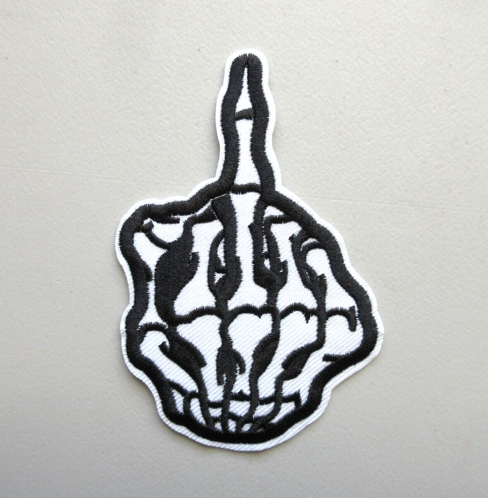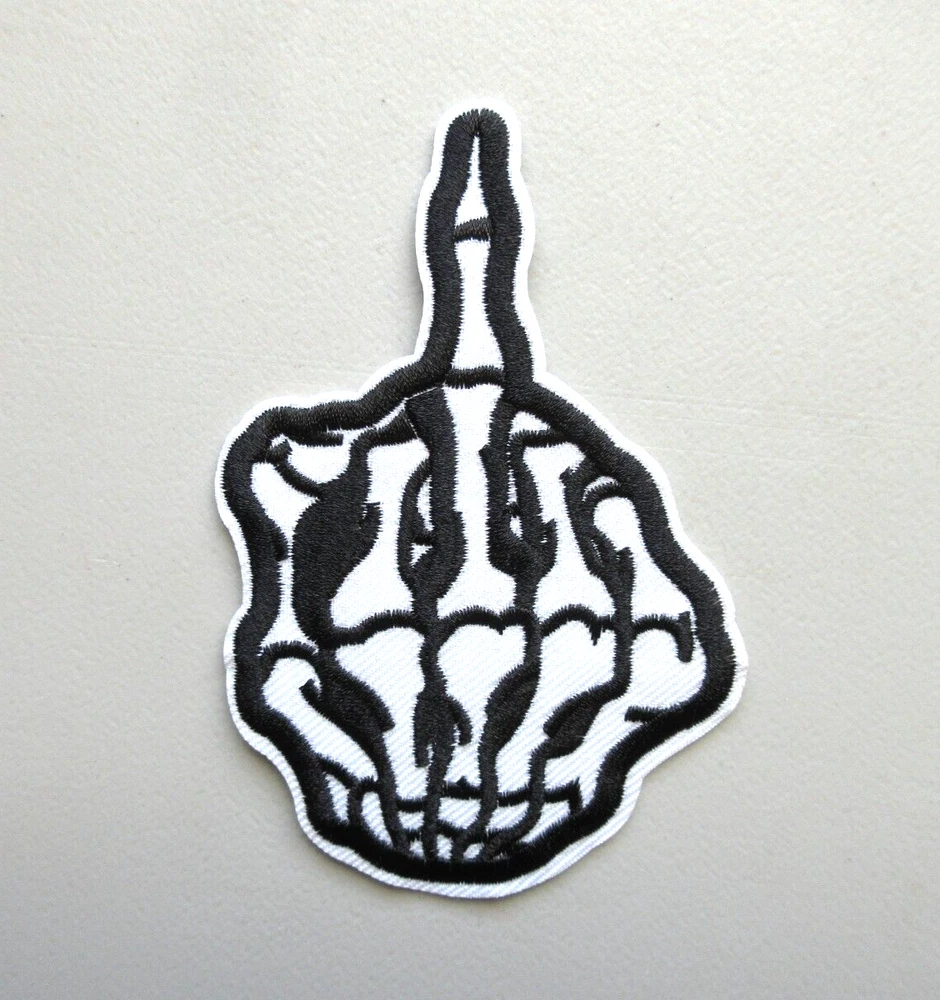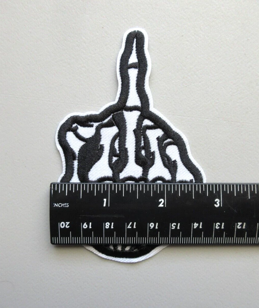*SKELETON MIDDLE FINGER PATCH* L6 Iron on or sew on patch See ruler in pictures for patch size 2 3/4 inches wide x 4 1/4 inches high Patch will be shipped USPS with tracking # FAST / FREE SHIPPING Check all pictures good before you buy $$$ Check out my other PATCHES for sale in my Ebay store *Buy with confidence see my ratings and feedback* Check out my other items ! I STRIVE FOR A FIVE STAR RATING. THANK YOU. Froo www.froo.com | Froo Cross Sell, Free Cross Sell, Cross promote, eBay Marketing, eBay listing Apps, eBay Apps, eBay Application