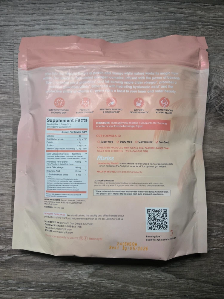 SKINNY FIT Super Youth Multi-Collagen Peptides Peach Mango 12.7oz 05/2026 Exp.
