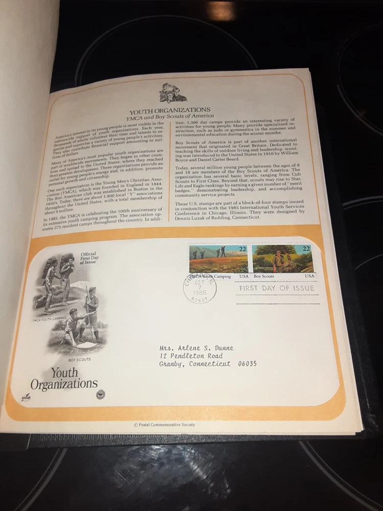 Postal Commemorative Society US First Day Cover Album is in very good condition. Has 66 or 67 covers with information sheet. 1984-1985.