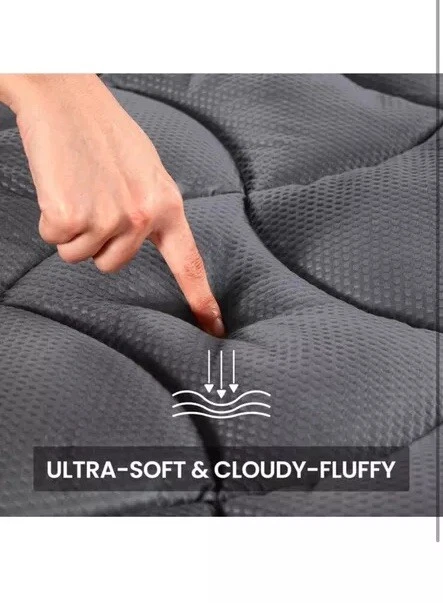 New item! COOLING BREATHABLE - Mattress pad with new NANOTEX Coolest Comfort Technology features moisture-wicking and fast-drying to actually balance your body temperature throughout the night. The sleep surface is treated with an embossed process, which is usually applied to sports fabrics, making it more breathable and stylish than ordinary material and bringing an advanced dynamic vibe to your bedroom. ULTRA SOFT FLUFFY - We use 120gsm thick brushed microfiber as the sleep surface. Overfilled with 12oz 5D spiral fiber, thicker than most on the market. The fiberfill maintains excellent softness and resilience, making this mattress pad super fluffy. Let you enjoy the luxury hotel level of comfort at home. UNIQUE 3-ZONE DESIGN - This mattress pad is ergonomically designed with three zones. The head and foot areas use a wavy design, which can ensure the edge is not deformed. The body area in the middle uses cloud-shaped quilting design to provide a larger body supportive area that disperses the body's pressure and prevents sagging. It helps to keep your body stretched naturally for deep and relaxed sleep. DEEP POCKET EASY CARE - Quilted Stretch-to-Fit (8"-21"): knitted skirt pocket stretches up to 21 inches deep and can be easily placed on most mattresses. The 1.6-inch width of high-quality sport elastic trim securely holds your wrap in place, and its excellent elasticity makes the wrap easy to fit and remove. It ensures you get the most restful and restorative sleep. Machine wash cold, do not use bleach, tumble dry low.
