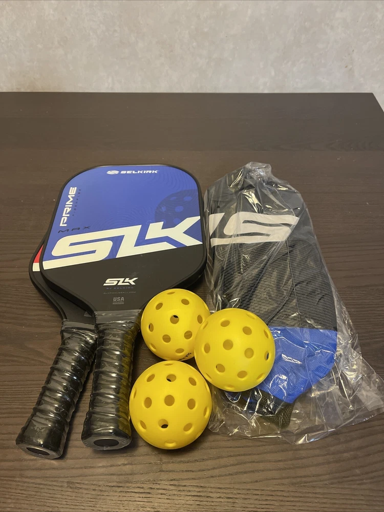 This SLK Prime pickleball set is the ultimate premium option for players of all levels. The set includes paddles, balls, and a convenient storage bag to keep everything organized and easily accessible. The brand, SLK, is known for its high-quality equipment and this set is no exception. The paddles are made with precision and control in mind, ensuring that you can hit the perfect shot whenever you need to. The balls are durable and long-lasting, so you can focus on your game without worrying about losing a ball. And with the included storage bag, you can easily transport all your gear to the court. This set is a must-have for any serious pickleball player. Brand new open box. Opened for inspection of items and pictures