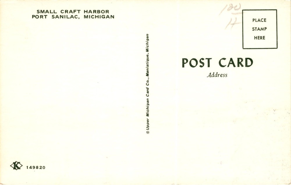 This postcard features a view of the Small Craft Harbor in Port Sanilac, Michigan. Port Sanilac is a village located in Sanilac County in the state of Michigan. The harbor is a popular spot for small boats and recreational watercraft.