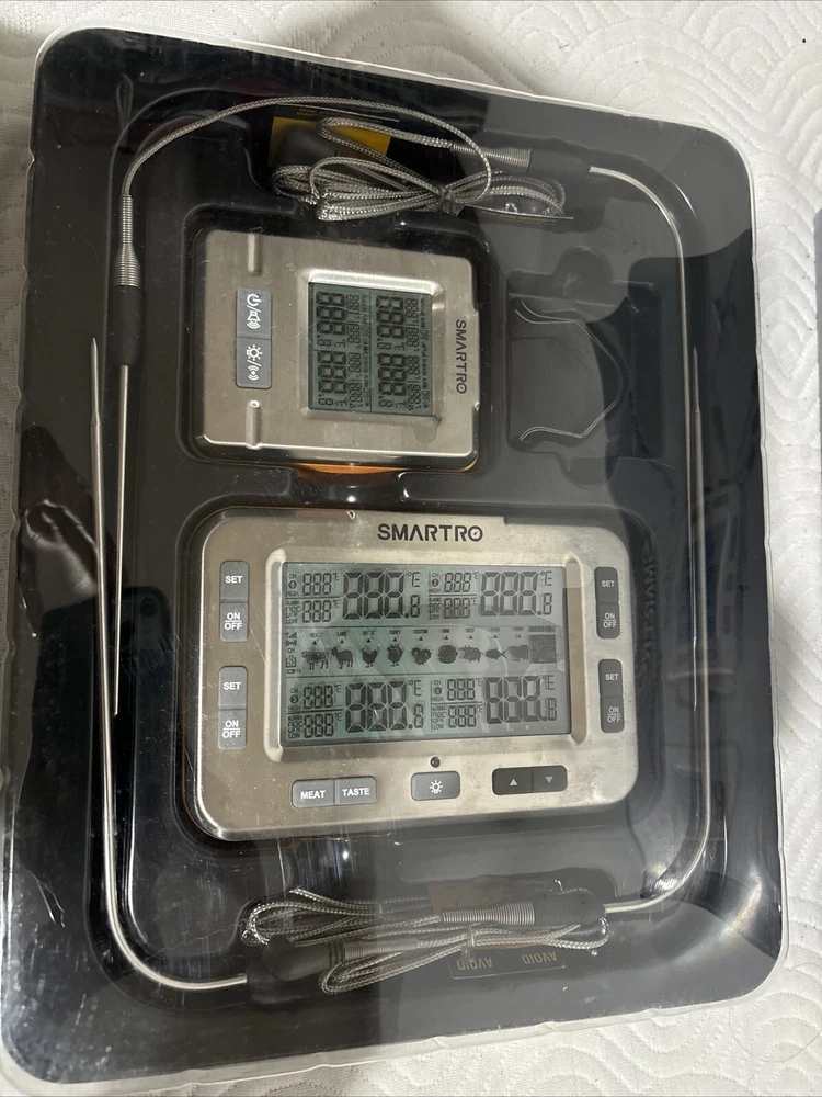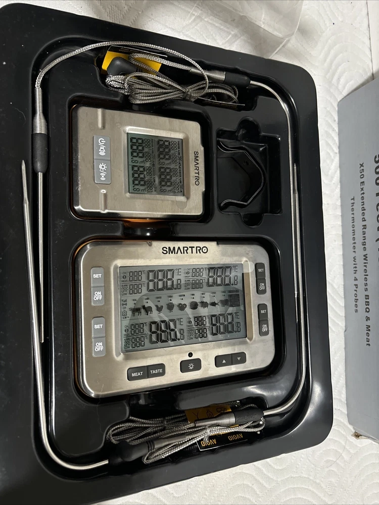 This SMARTRO X50 Wireless Meat Thermometer is the perfect addition to any BBQ or cooking setup. With 4 probes and a 500ft long range, you can easily monitor the temperature of your meat and other cooking items. The thermometer is friendly for 24 hours and comes with a custom bundle that includes everything you need to get started. The unit type is in feet and the size is a 4 probe thermometer. This meat thermometer is perfect for those who love to cook and want to ensure their meat is cooked to perfection. The tax is no tax and the bundle listing is yes. Free returns and free shipping are included with this purchase. Stand 2 Shelf 3