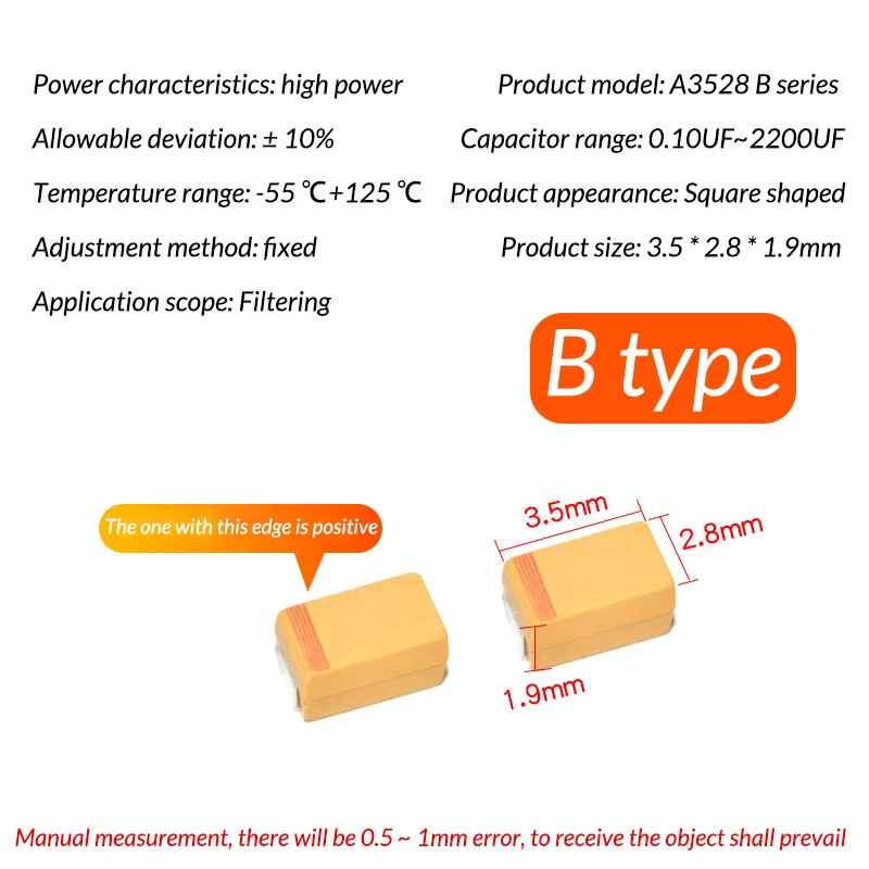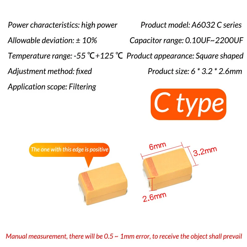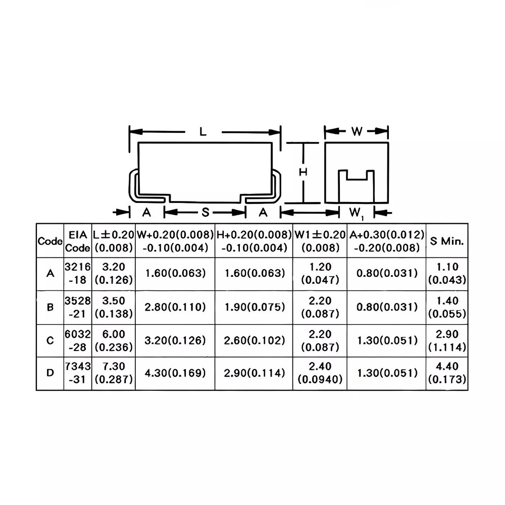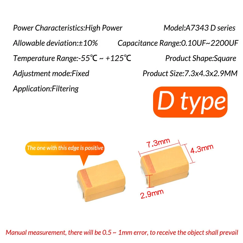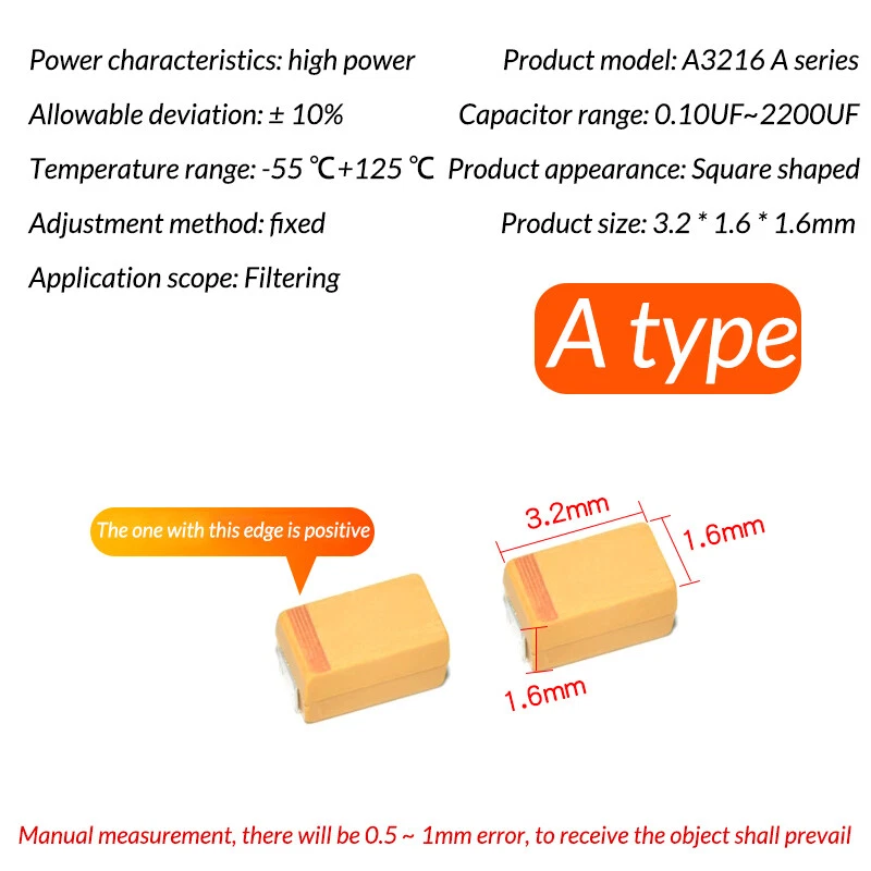 SMD Tantalum Capacitor 6.3V 10V 16V 20V 25V 35V 50V A/B/C/D Type 1uF to 470uF
