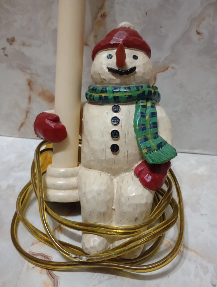 Add a touch of holiday cheer to your home with this adorable snowman candle nightlight accent table lamp. Perfect for any occasion, this multicolor light is made of durable resin material and features a matte finish. The snowman subject, along with the Christmas theme, makes it a great addition to any collection or display. Manufactured in China in the year 2000, this light is suitable for teens, adults, and kids alike. It's a perfect shelf sitter and can be placed anywhere in your home to create a cozy and inviting atmosphere. Get ready to celebrate the winter season in style with this charming snowman candle nightlight accent table lamp.