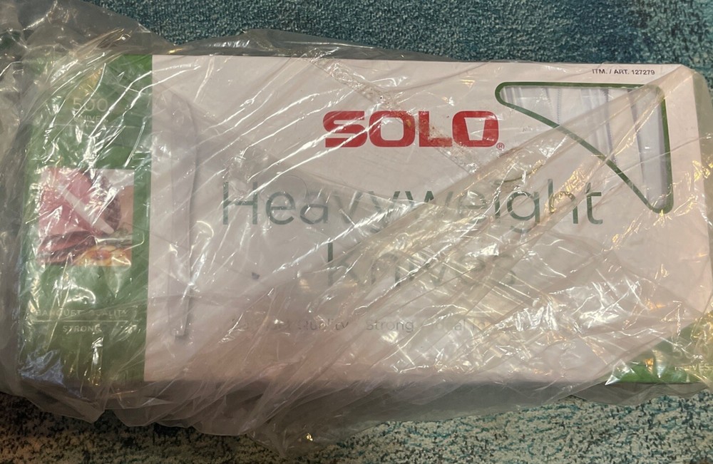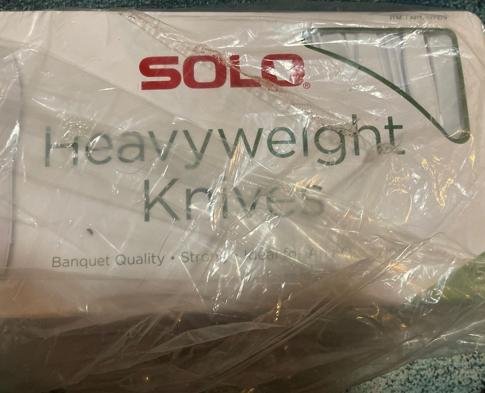 SOLO Heavyweight Plastic White Knives, 500/Case. Condition is New. Shipped with USPS Ground Advantage.