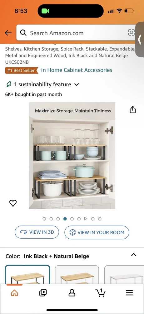 HomeSONGMICS Cabinet Organizer Shelf, Set of 8 Kitchen Counter Shelves, Kitchen