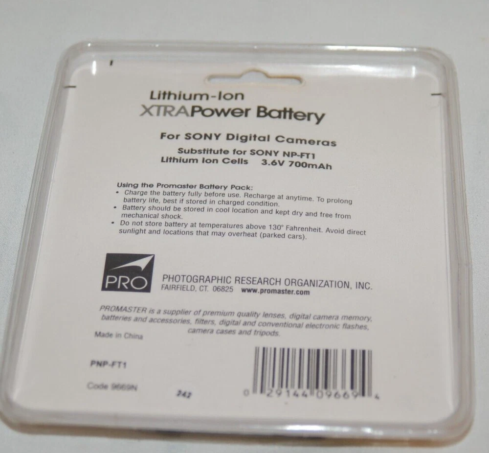 ITEM: THIS IS FOR A NIP NOS PROMASTER LITHIUM-ION XTRA POWER BATTERY ALKIT PRO CAMERA FOR ANY SONY CAMERA NEEDING A NPFT1 BATTERY, MEMORY FREE, NO CHARGER IS INCLUDED JUST THE BATTERY. A PIC IS WORTH A 1000 WORDS, SO PLEASE LOOK AT THE PICTURES . HELLO AND THANK YOU FOR LOOKING AT MY LISTING PLEASE READ THE FOLLOWING GROUND RULES FOR A SMOOTH TRANSACTION: (RULES ARE IN BLACK, GENERAL IN BLUE AND ITEM DESCRIPTION IN GREEN) (CAPS DO NOT MEAN I AM YELLING JUST TRYING TO MAKE THE LISTING EASY TO READ IN CAPS AND LARGER FONT) ITEM DESCRIPTION IS AT THE END SO YOU HAVE TO SCROLL TO THE BOTTOM IF YOU CONTACT ME AND TELL ME YOU DID NOT READ THE LISTING THAT IS ON YOU. FIRST BUYER AGREES TO TERMS AND CONDITIONS OF MY LISTING, AND MY RETURN POLICY, YOU AS THE BUYER ARE RESPONSIBLE TO READ THE ENTIRE DESCRIPTION AND ASK QUESTIONS PRIOR TO BIDDING. I BELIEVE IN BEHAVING IN A CIVIL FASHION, RUDE, FOUL, DEMEANING AND UGLY CORRESPONDENCE WILL NOT BE TOLERATED, LETS BE CIVIL, NO NAME CALLING, NO ACCUSATIONS. YOU AGREE AS A BUYER TO CONTACT ME PRIOR TO LEAVING ME NEGATIVE FEEDBACK, SADLY I HAVE TO PUT THIS IN HERE AS NOTHING IS MORE FRUSTRATING THAN TO OPEN UP AND SEE I HAVE BEEN LEFT NEGATIVE FEEDBACK AND NOT EVEN BEEN MADE AWARE OF OR HAD A CHANCE TO FIX AN ISSUE. I AM HUMAN, THERE WILL BE PROBLEMS, I BELIEVE HOW WE HANDLE THEM IS WHAT SETS US APART FROM ANIMALS. I CARE ABOUT MY BUYERS, IF I MAKE A MISTAKE I WILL TRY MY BEST TO MAKE IT RIGHT AND MAKE IT A WIN-WIN SITUATION. AGAIN I AM HUMAN AND THINGS HAPPEN, LETS ALL EXTEND SOME GRACE TO EACH OTHER. MY RETURN POLICY IS PRETTY CLEAR, I ACCEPT RETURNS UP TO 14 DAYS, IF AN ITEM I SEND IS NOT SIGNIFICANTLY AS DESCRIBED, IF YOU WERE EXPECTING A LIGHT GREEN AND GOT A SLIGHTLY DARKER GREEN ITEM THAT IS NOT A REASON FOR REPLACEMENT OR RETURN, IF I SAY YOU GET A HOLSTER AND I SEND YOU A WIDGET INSTEAD THATS A REASON FOR RETURN, IF I SAY ITS BLEMISHED AND IT LOOKS LIKE A CAT USED IF FOR A SCRATCHING POST AGAIN REASON FOR RETURN, IF IT IS BLEMISHED AND YOU SAY, HEY IT HAS STAIN OR FADED NOT A REASON FOR RETURN A STAIN IS A BLEMISH, PLEASE CONTACT ME PRIOR TO OPENING A CASE OR COMPLAINT AGAIN GIVE ME A CHANCE TO FIX IT, IF YOU HAVE A PROBLEM PLEASE SEND ME A PICTURE, CLEAR DESCRIPTION AND WHAT YOUR CONCERNS ARE. YOU WILL FIND ME HONEST, OPEN AND WILLING TO MAKE THINGS RIGHT. I FEEL COMMUNICATION IS A KEY, CIVIL, OPEN AND HONEST. YOU THE BUYER AGREE TO PAY SHIPPING BACK TO ME, THIS IS A COMMON PRACTICE AND NOT UNDULY BURDENSOME, AGAIN CONTACT ME PRIOR TO A CASE, IF I FEEL THE ERROR IS ON ME I WILL GLADLY TELL YOU TO SEND A RETURN REQUEST SO I CAN PAY THE SHIPPING BACK SEEMS FAIR ENOUGH. YOU THE BUYER ARE RESPONSIBLE TO EXAMINE THE ITEM IN A TIMELY MANNER AND MAKE ME AWARE OF ANY CONCERNS. IF I ASK YOU TO RETURN AN ITEM AND YOU REFUSE YOU WAIVE YOUR RIGHTS TO RETURN OR REFUND. FEEDBACK AGAIN BEFORE YOU LEAVE ME NEGATIVE FEEDBACK I THINK ANY SELLER SHOULD BE CONTACTED, YOU AGREE TO CONTACT ME AND GIVE ME A CHANCE TO CORRECT THE ISSUE. A SELLER SHOULD BE GIVEN A CHANCE TO CORRECT A PROBLEM AND MAKE IT RIGHT. WE SELLERS HAVE SEVERAL OPTIONS BUT NEED YOU THE BUYER TO ALLOW US TO USE THEM. A KNEE JERK REACTION OF NEGATIVE FEEDBACK WITHOUT EVEN BEING GIVEN A CHANCE TO HELP YOU IS SIMPLY NOT FAIR. SHIPPING: I RESERVE THE RIGHT TO CHANGE SHIPPING, USUALLY THIS HAPPENS IF I MISCALCULATE A WEIGHT AND THE ITEM ENDS UP COSTING MORE THAN I ANTICIPATED. I DO NOT CHARGE HANDLE FEES, OR EXTRA CHARGES ON SHIPPING, I USUALLY OFFER FREE SHIPPING. I TRY TO BE AS FAIR AS I CAN. IF I DISCOVER THAT SHIPPING IS REALLY TOO EXPENSIVE I WILL ISSUE A FULL REFUND TO YOU, I CAN NOT TAKE HUGE LOSSES. ALSO IF I OFFER FED EX AND YOU HAVE A PO BOX I WILL BE FORCED TO SHIP PRIORITY OR USPS BUYER WILL BE RESPONSIBLE FOR PRICE DIFFERENCE. YES I WILL GLADLY COMBINE SHIPPING WHEN I CHARGE FOR SHIPPING TO YOU THE BUYER. GENERAL ITEM DESCRIPTION: I OFTEN SELL USED ITEMS, THEY WILL SHOW WEAR, SCRATCHES, DENTS, DINGS, SLIGHT COSEMETIC ISSUES LIKE SMALL WEAR SPOTS, MAYBE A SMALL HOLE, FADING, FRAYING, USE ETC. MEANING FOLKS THEY ARE NOT PRISTINE BRAND NEW IN THE PACKAGE ITEMS. I DO HAVE NEW ITEMS FROM TIME TO TIME AND WILL GLADLY LIST THEM AS SUCH. I TRY TO BE HONEST AGAIN IF YOU HAVE A CONCERN LET ME KNOW. MILITARY SURPLUS ITEMS WILL BE QUALITY US ITEMS NOT CHEAP IMITATIONS. THEY MAY HAVE NAMES, MARKS, BLOTCHES, WRITING, AND OTHER COSMETIC ISSUES. PLEASE LOOK AT THE PICTURE AS THEY WILL USUALLY HELP, SOME ITEMS WILL BE SLIGHTLY DIFFERENT IN STYLE FROM WHAT IS SENT(EXAMPLE, A CANTEEN MAY BE PICTURED WITH A STANDARD CAP AND COVER, I MAY SEND YOU A NEWER COVER OR AN NBC CAP, STILL A CANTEEN WITH A CAP AND COVER JUST A DIFFERENT STYLE, A WEB BELT MAY BE PICTURED WITH A CERTAIN BUCKLE BUT YOU MAY GET A DIFFERENT STYLE BUCKLE, STILL A WEB BELT AND BUCKLE JUST A DIFFERENT STYLE) IF YOU ARE PARTICULAR IN WHAT YOU WANT HOW ABOUT YOU SEND ME AN EMAIL FIRST TO MAKE SURE I CAN EITHER PROVIDE WHAT YOU WANT OR HAVE WHAT YOU WANT THE WAY YOU WANT IT. THERE MAY BE TIMES I HAVE A LISTING THAT STATES PLEASE SPECIFY SIZE, SO WHAT THAT MEANS IS EXACTLY WHAT IT SAYS, IF YOU NEED A LARGE SEND ME AN EMAIL OR NOTE WITH PAYMENT I NEED A SIZE LARGE, OR MEDIUM OR SMALL. EASY ENOUGH. I MAY ALSO HAVE DIFFERENT COLORS PLEASE SPECIFY WHAT COLOR YOU WOULD LIKE AND WILL GLADLY PROVIDE IT IF I CAN. IF YOU DO NOT SPECIFY THEN I WILL MAKE THE CHOICE AND YOU WILL BE HAPPY WITH IT AS YOU DID NOT LET ME KNOW WHAT YOU WANTED AND I AM NOT A JEDI KNIGHT MIND READER USING THE FORCE, LOL. AGAIN COMMUNICATION WILL HELP RESOLVE ISSUES BEFORE THEY HAPPEN. PLEASE AGAIN READ EVERYTHING, AND THANK YOU FOR LOOKING AT MY LISTING. Track Page Views With Auctiva's FREE Counter Track Page Views With Auctiva's FREE Counter