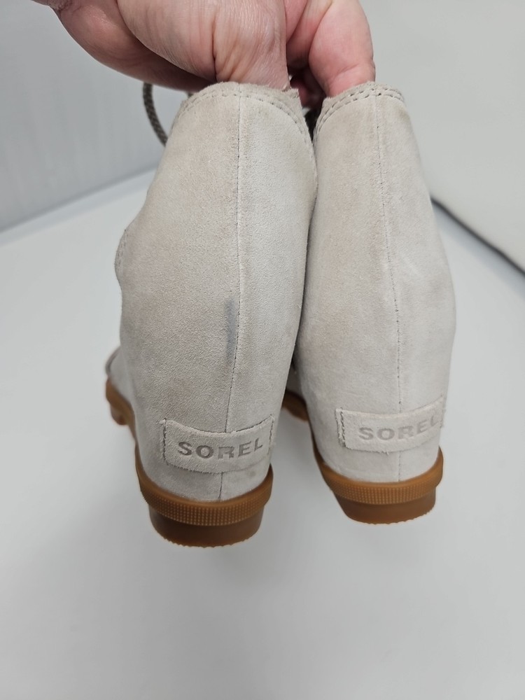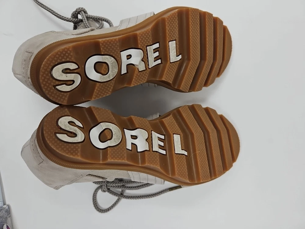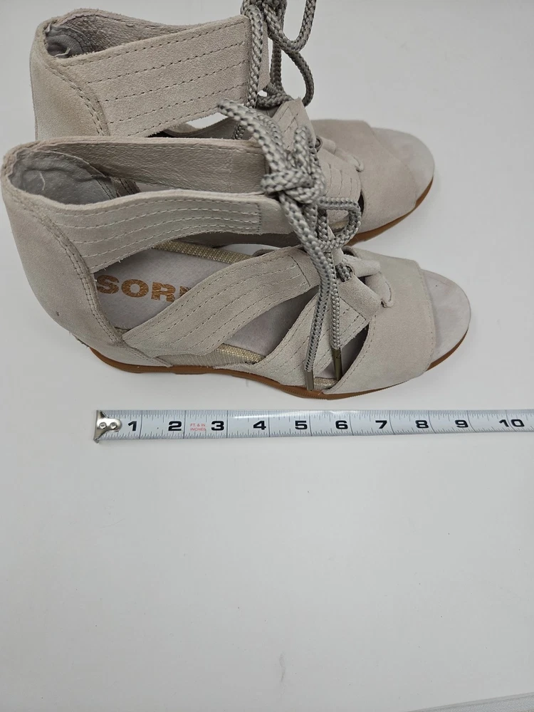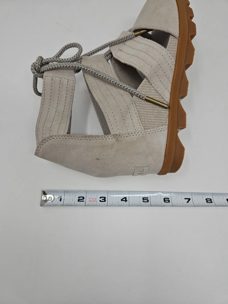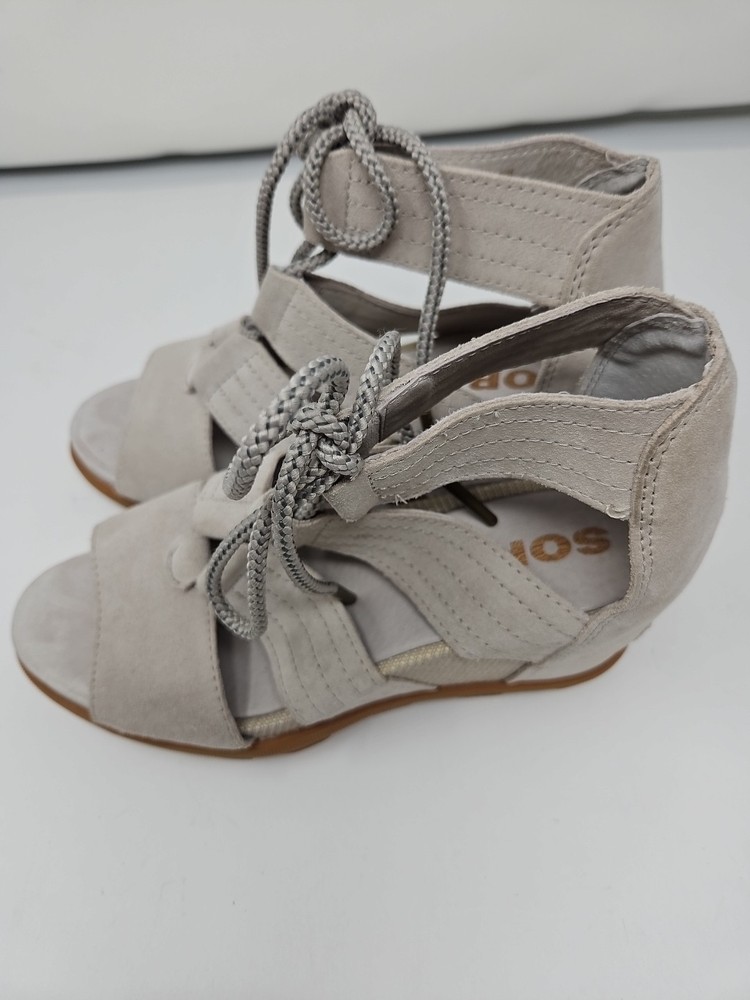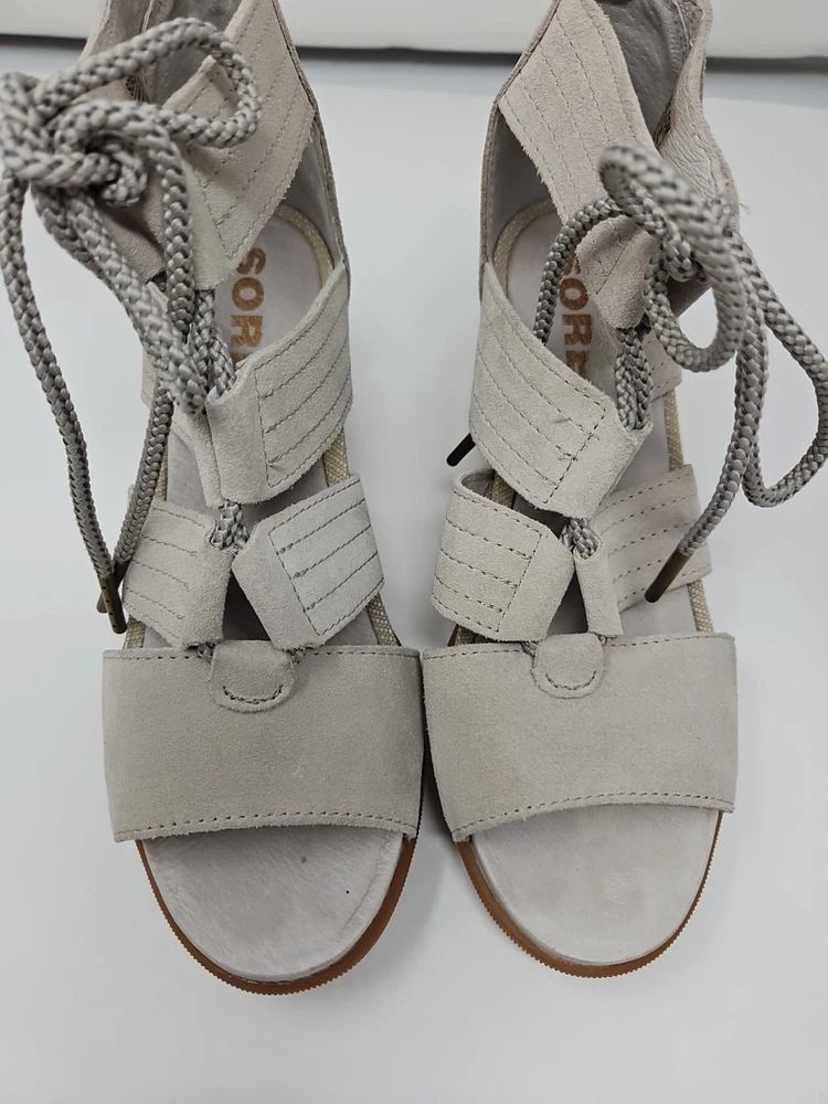 Embrace the effortless sophistication with the SOREL Joanie II sandal, a perfect blend of style and comfort for the discerning woman. These tan wedge sandals, crafted from premium nubuck leather, offer a sleek gladiator-inspired design that complements any casual or party ensemble. The breathable lining and memory foam insole ensure your feet stay cool and comfortable throughout the day, while the adjustable lace-up closure provides a secure fit. With a versatile beige color that transitions smoothly from spring to summer to fall, the Joanie II is a reliable companion for various occasions, from a casual stroll to a chic cocktail party. The durable rubber outsole offers stability and grip on diverse terrains, making these sandals a practical choice for travel or everyday wear. Experience the fusion of fashion-forward accents like the embossed logo and delicate lace detailing with the functional features that make the SOREL Joanie II a standout addition to your footwear collection.