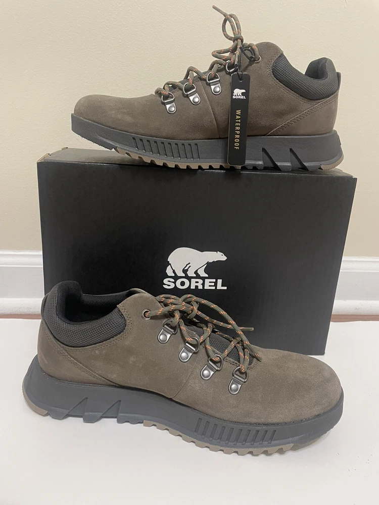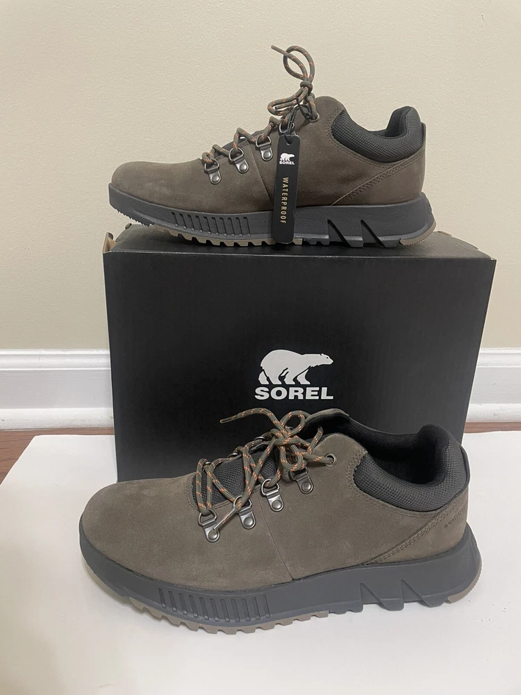 SOREL MAC HILL™ LITE HIKER LOW MEN'S WATERPROOF SNEAKER SIZE 9.5 LOW PROFILE WATERPROOF HIKING BOOTS The MAC HILL™ LITE HIKER LOW combines do-it-all hiking boot construction with modern styling. Features waterproof design for any condition. * UPPER: Available in suede and full grain waterproof leather. Metal hardware. Waterproof membrane construction. Laces are not waterproof. * FOOTBED: Removable molded EVA with textile topcover. * MIDSOLE: Lightweight molded LIVELYFOAM™. * OUTSOLE: EVERTREAD™ rubber pods with ground contact EVA. * LACE LENGTH: 43 in.